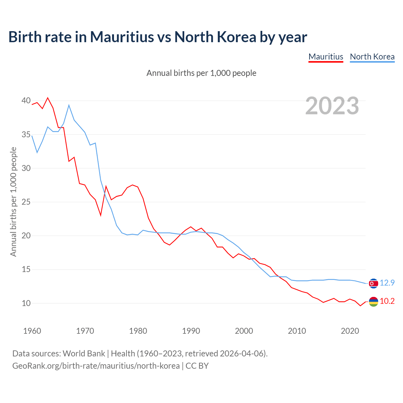 GeoRank.org/birth-rate/mauritius/north-korea | CC BY