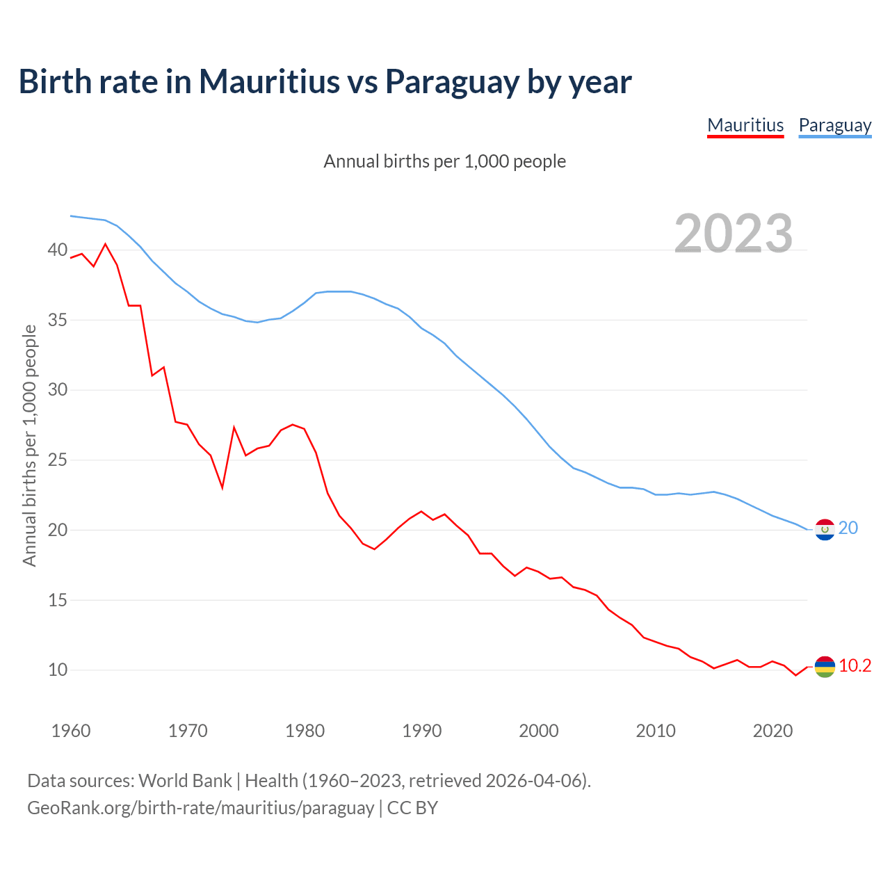 GeoRank.org/birth-rate/mauritius/paraguay | CC BY