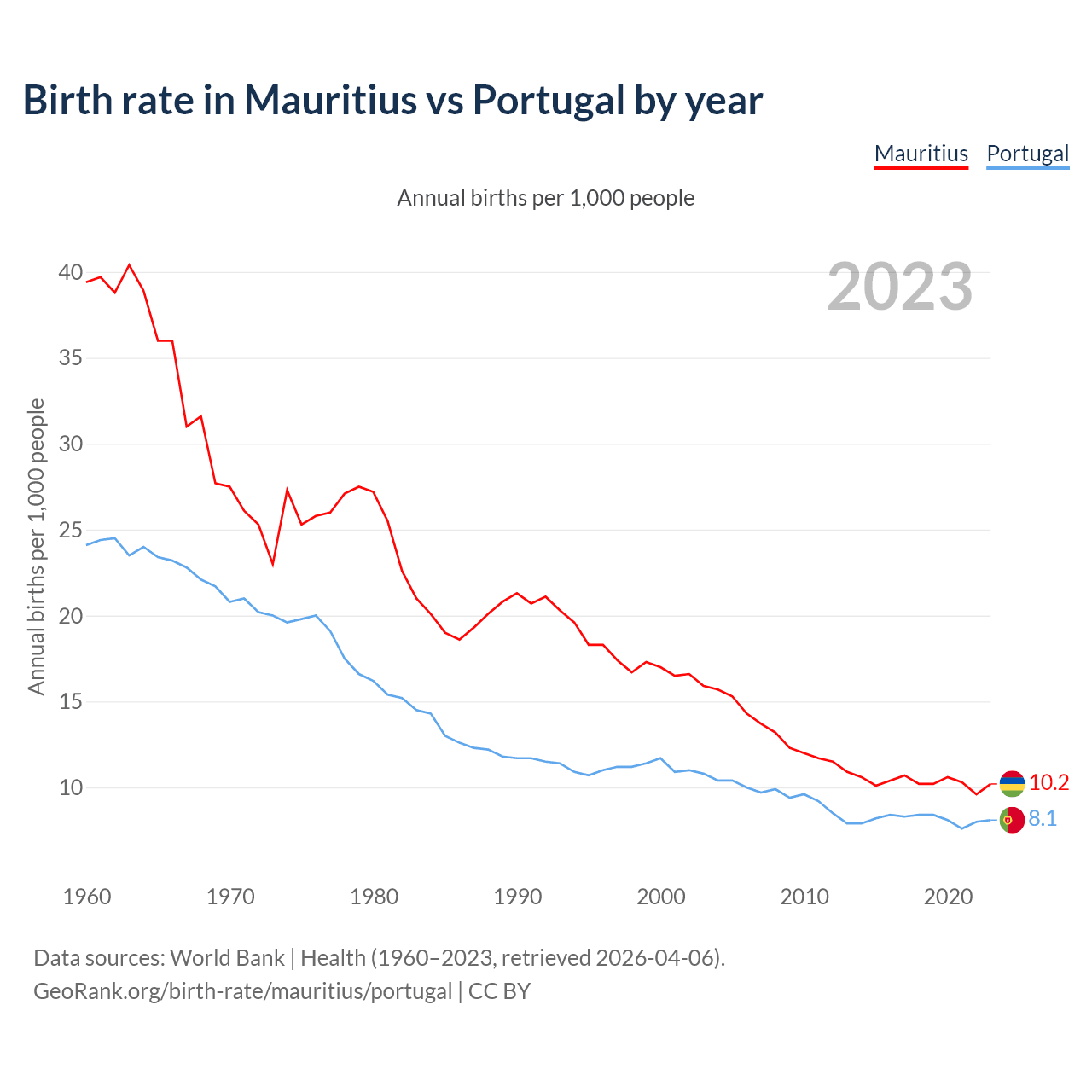 GeoRank.org/birth-rate/mauritius/portugal | CC BY
