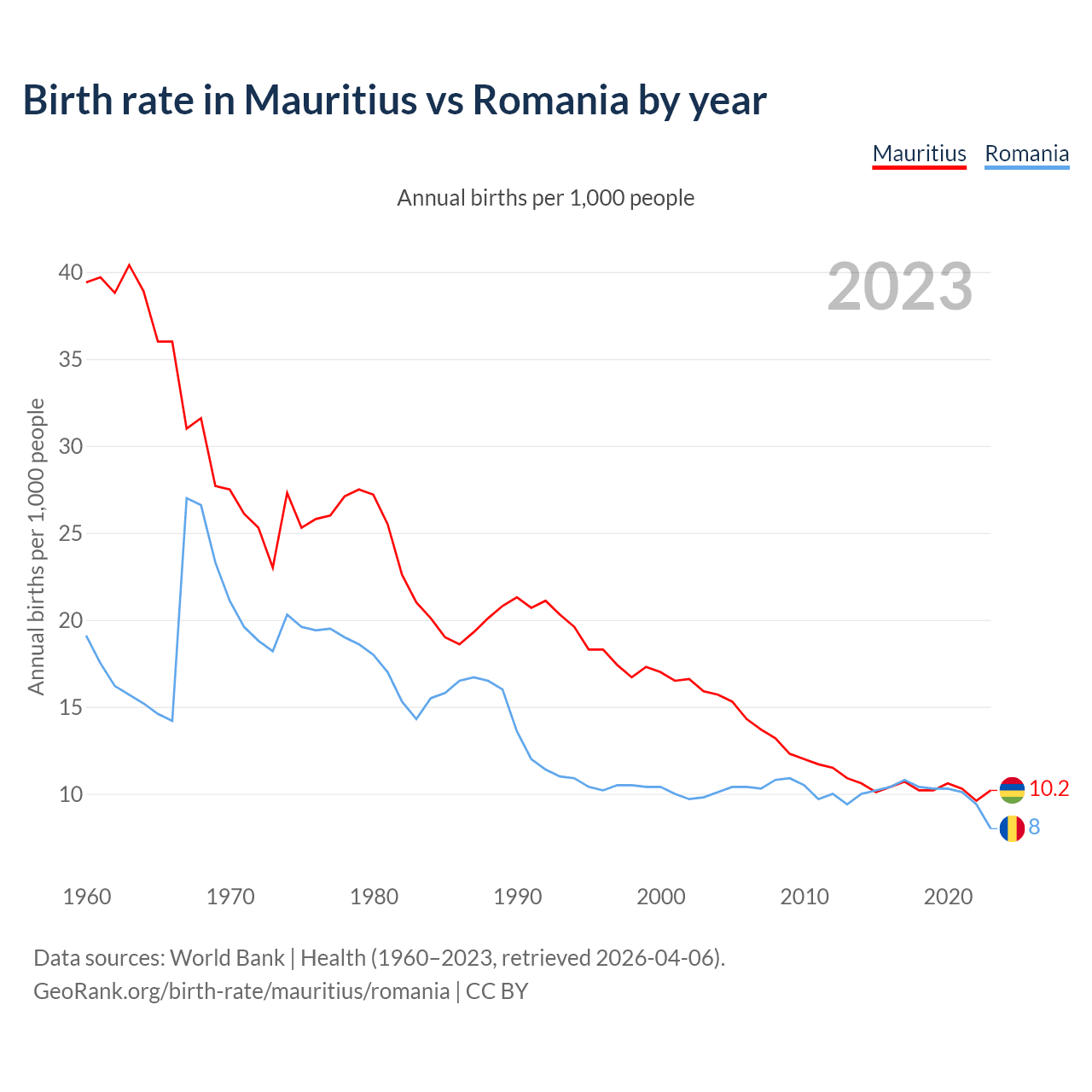 GeoRank.org/birth-rate/mauritius/romania | CC BY