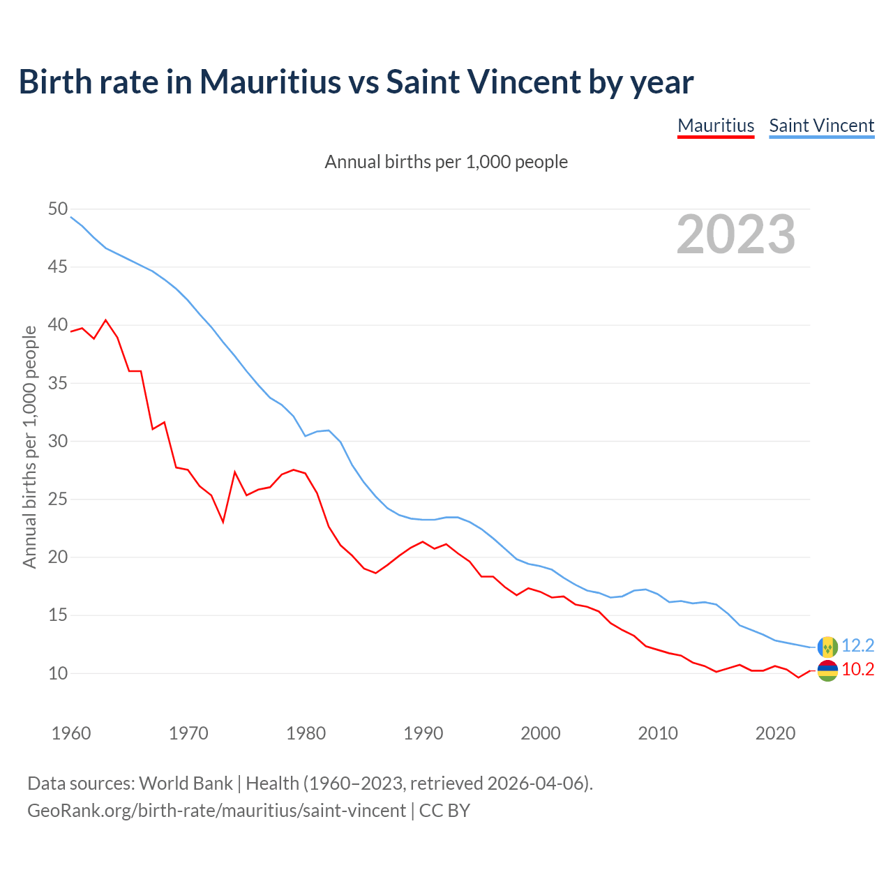 GeoRank.org/birth-rate/mauritius/saint-vincent | CC BY