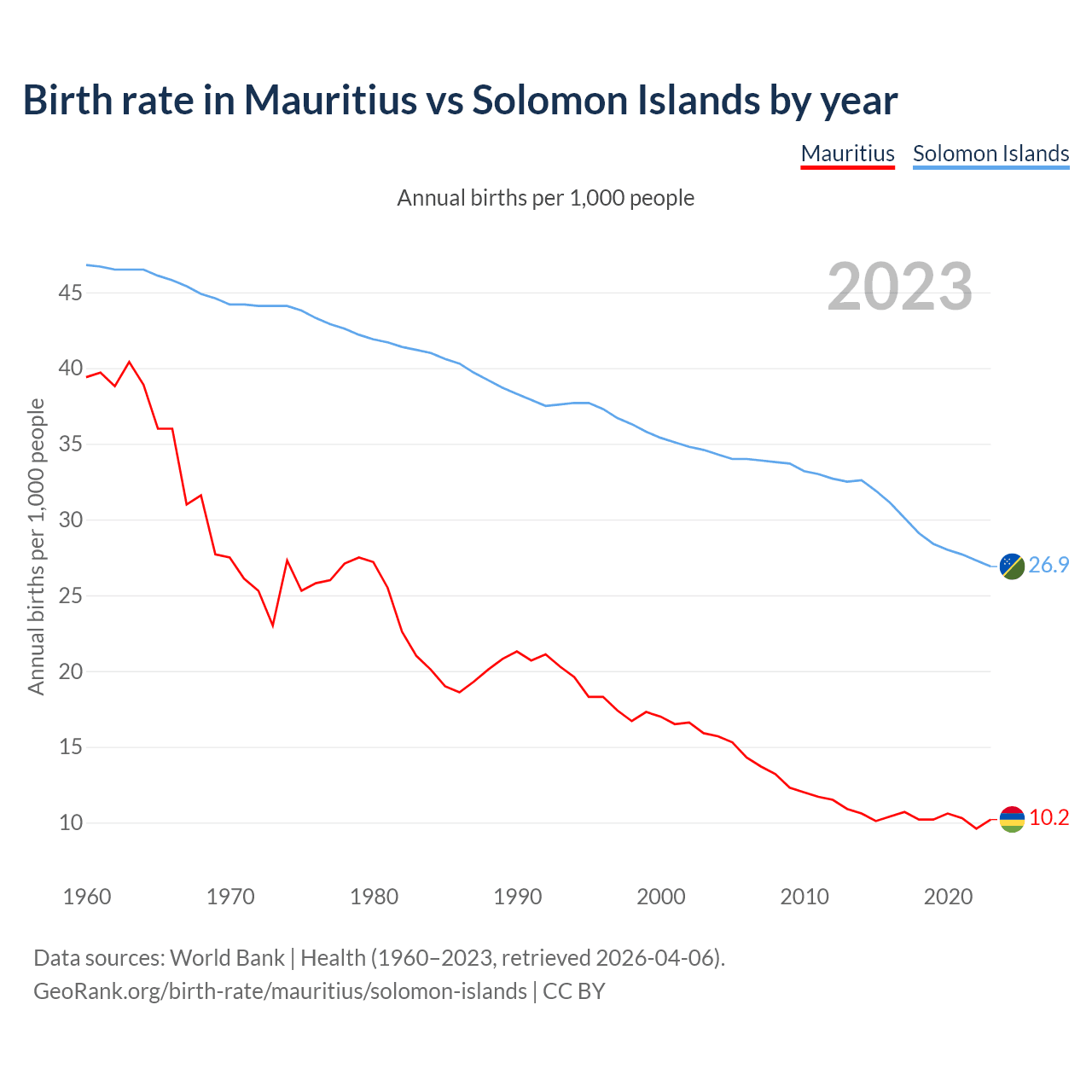 GeoRank.org/birth-rate/mauritius/solomon-islands | CC BY