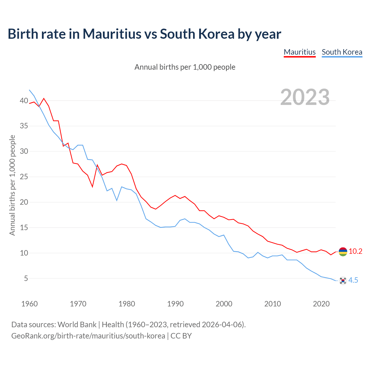 GeoRank.org/birth-rate/mauritius/south-korea | CC BY