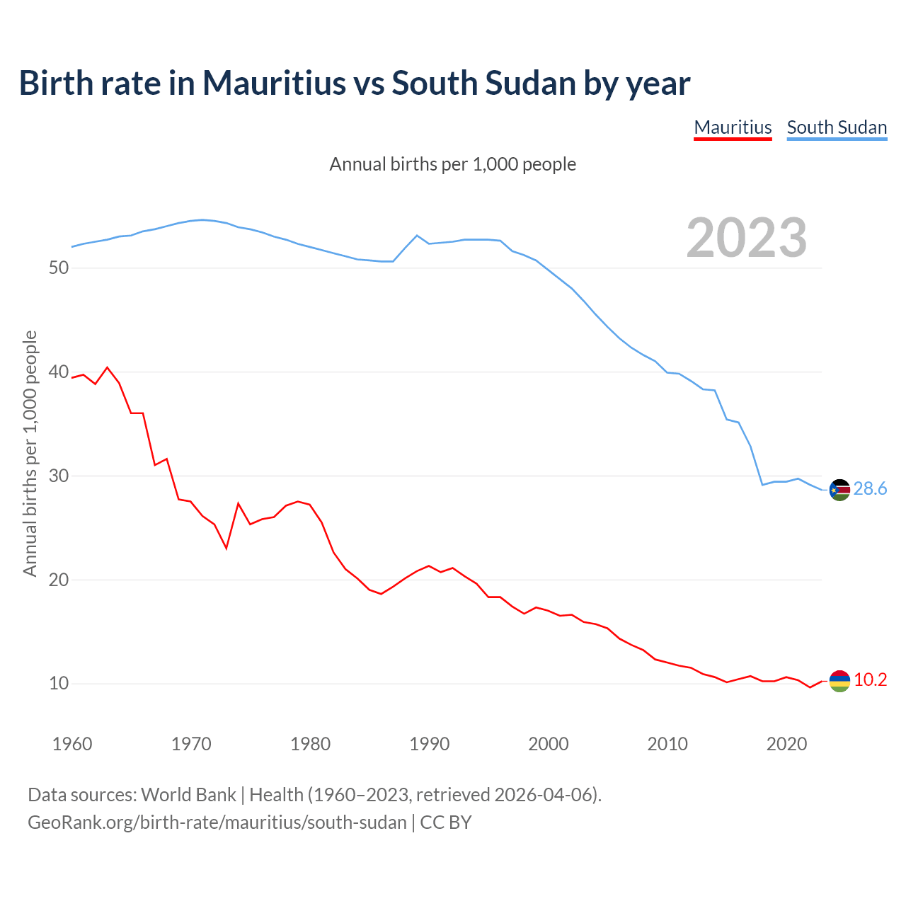 GeoRank.org/birth-rate/mauritius/south-sudan | CC BY