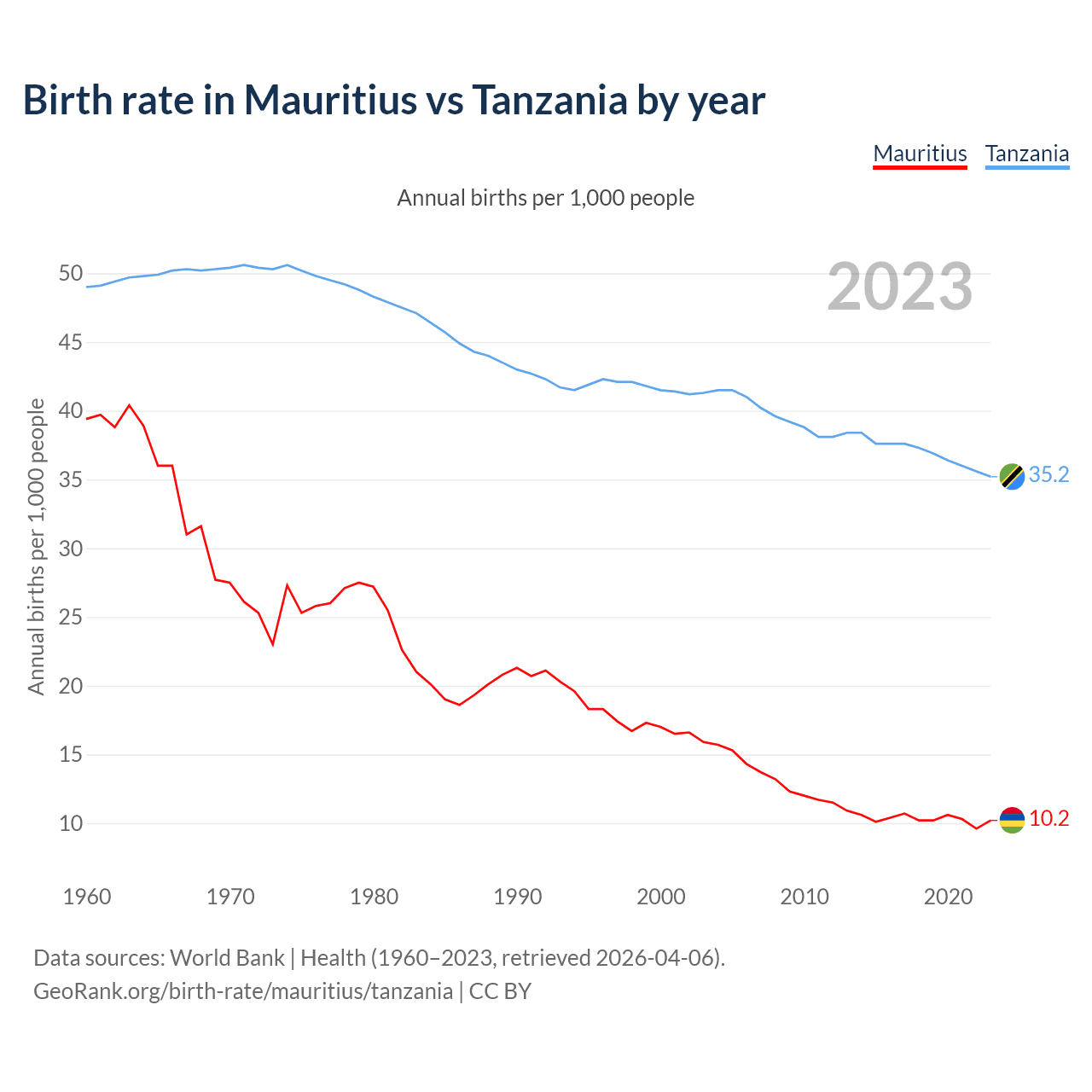 GeoRank.org/birth-rate/mauritius/tanzania | CC BY