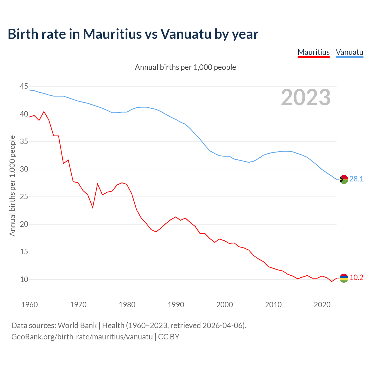 GeoRank.org/birth-rate/mauritius/vanuatu | CC BY