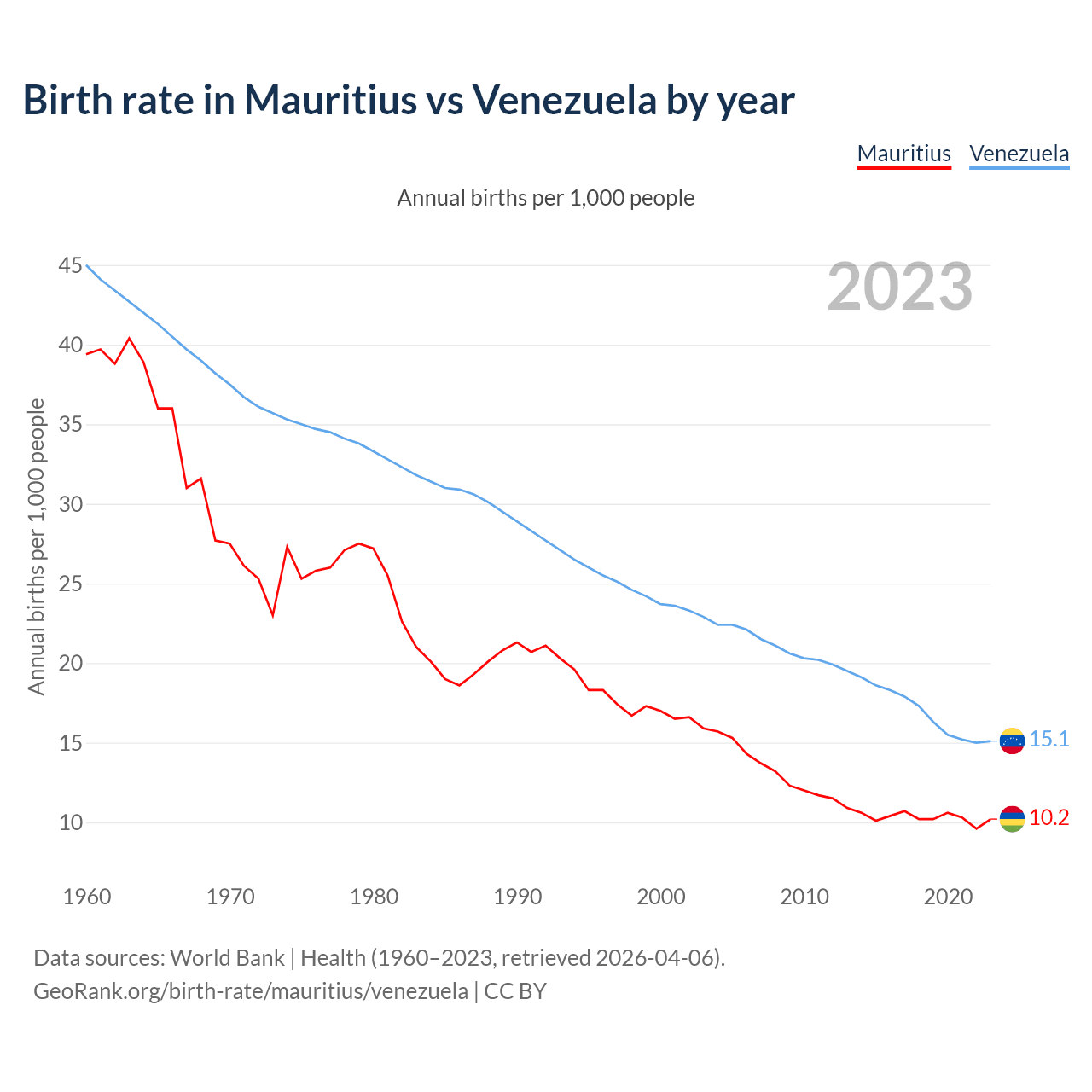 GeoRank.org/birth-rate/mauritius/venezuela | CC BY