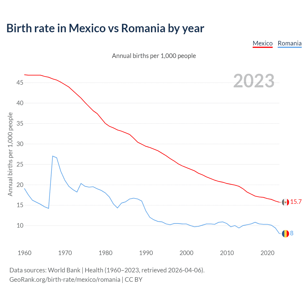 GeoRank.org/birth-rate/mexico/romania | CC BY