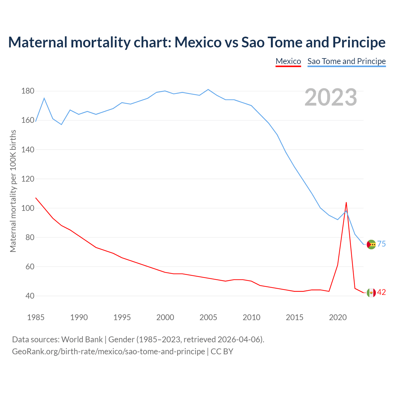 - Annual births per 1,000 women ages 15-19 (adolescent birth rate or teenage mother rate) is 60.1 in Mexico vs 86.2 in Sao Tome and Principe.