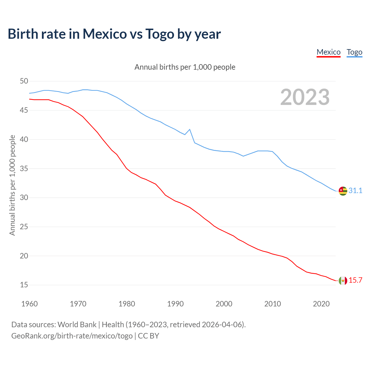 GeoRank.org/birth-rate/mexico/togo | CC BY