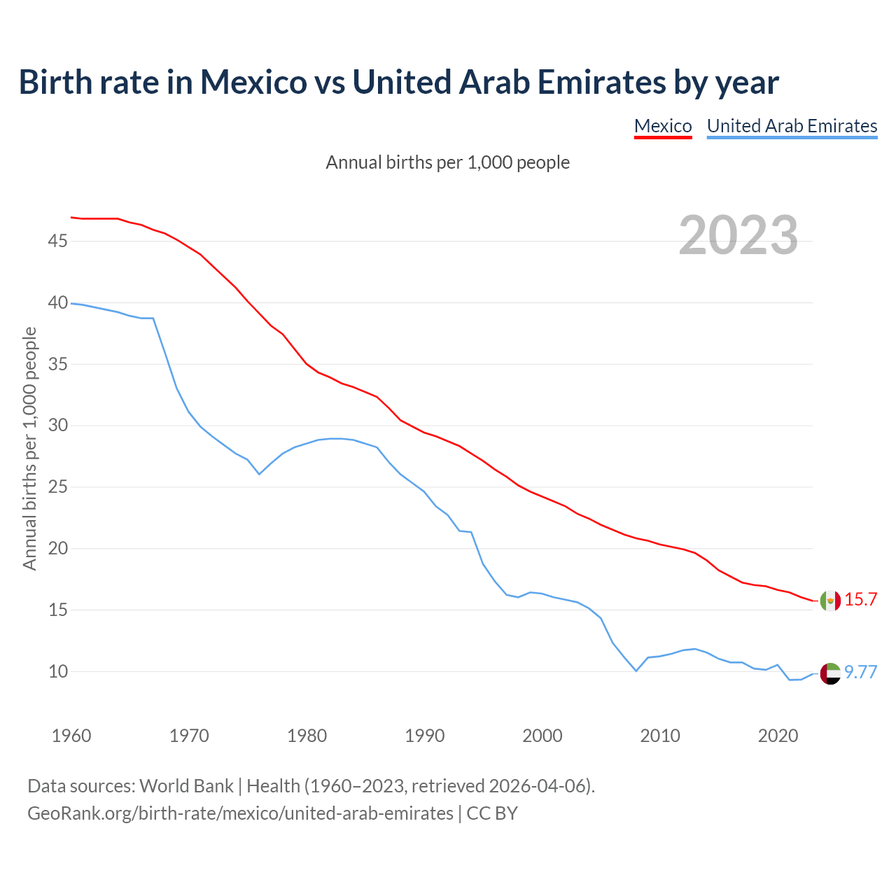 GeoRank.org/birth-rate/mexico/united-arab-emirates | CC BY
