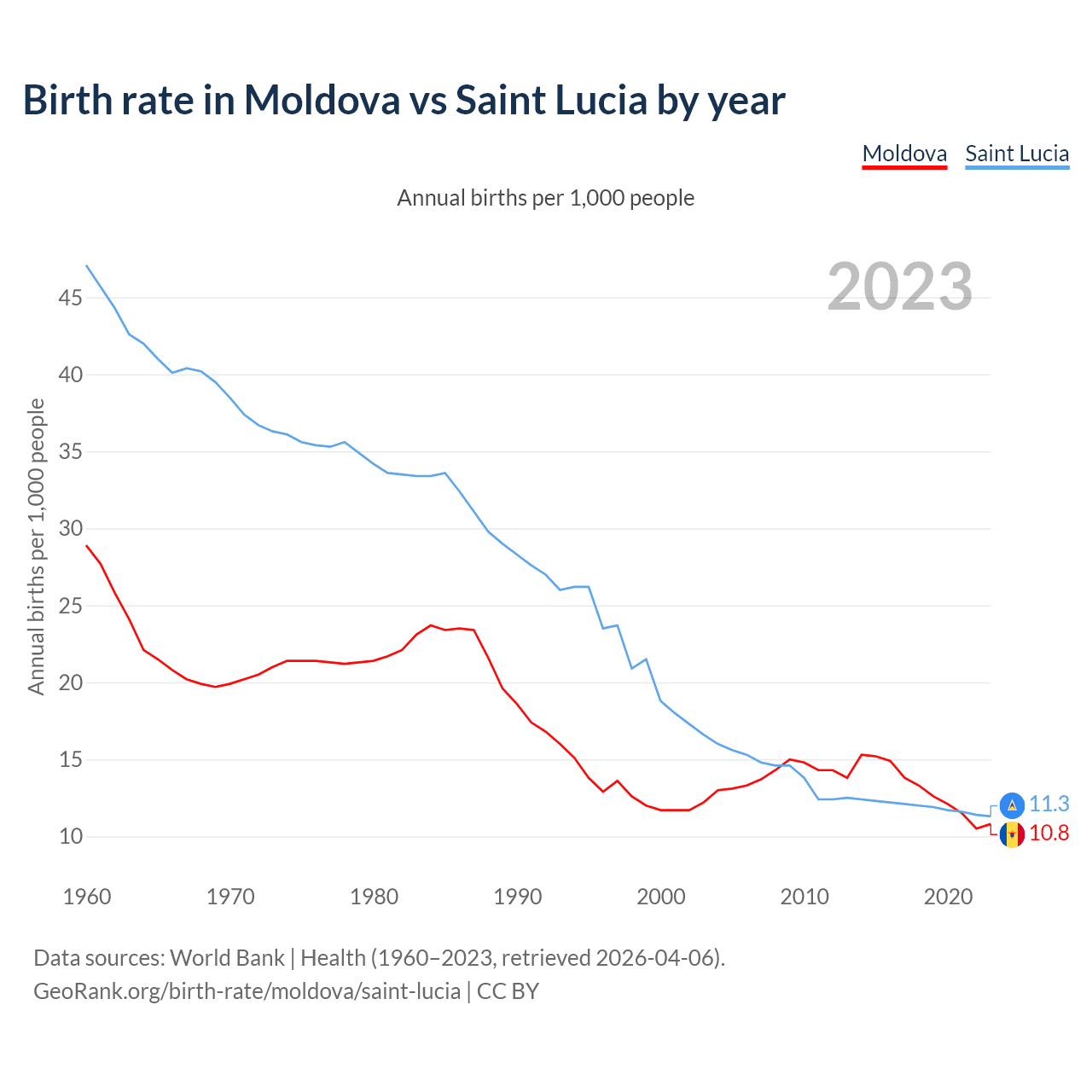 GeoRank.org/birth-rate/moldova/saint-lucia | CC BY