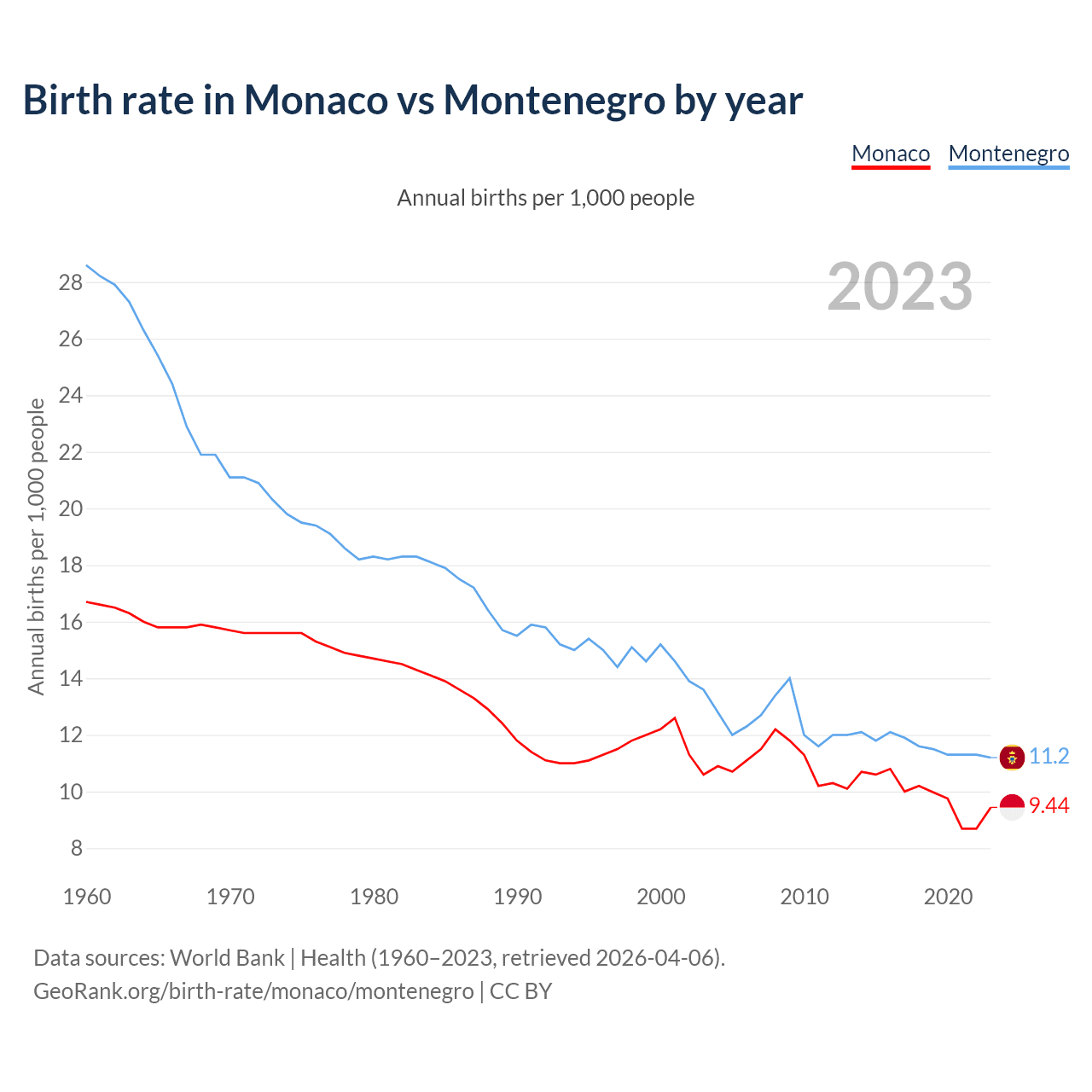 GeoRank.org/birth-rate/monaco/montenegro | CC BY
