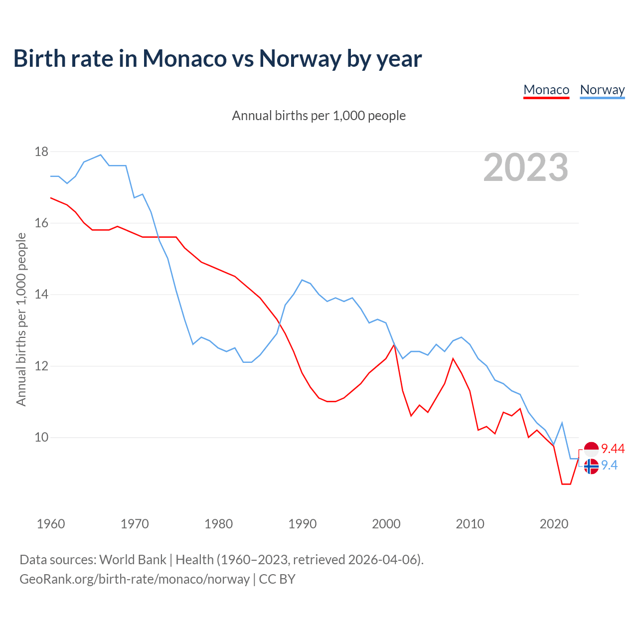 GeoRank.org/birth-rate/monaco/norway | CC BY