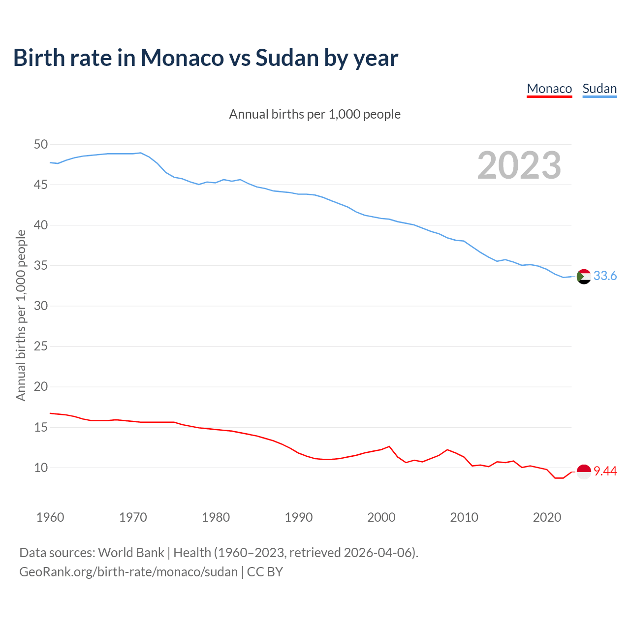 GeoRank.org/birth-rate/monaco/sudan | CC BY