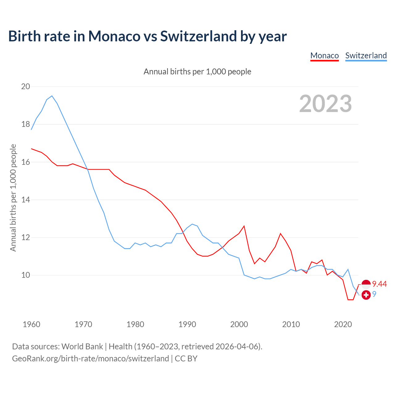 GeoRank.org/birth-rate/monaco/switzerland | CC BY