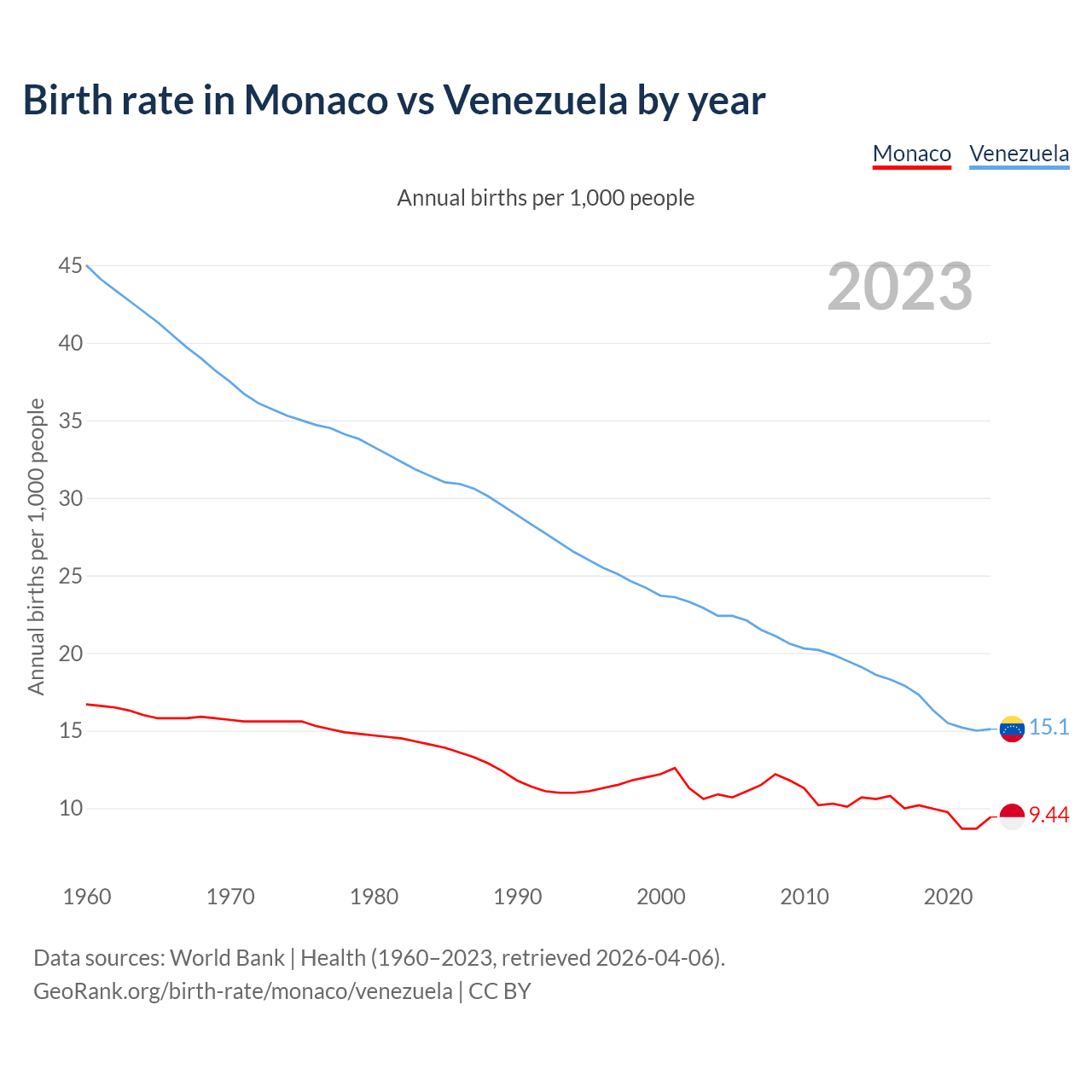 GeoRank.org/birth-rate/monaco/venezuela | CC BY