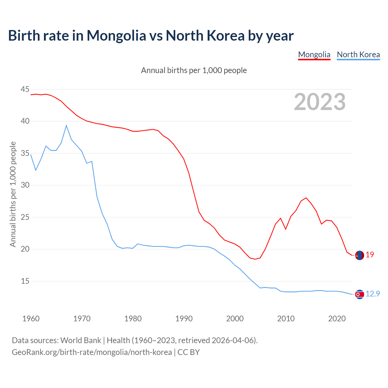 GeoRank.org/birth-rate/mongolia/north-korea | CC BY