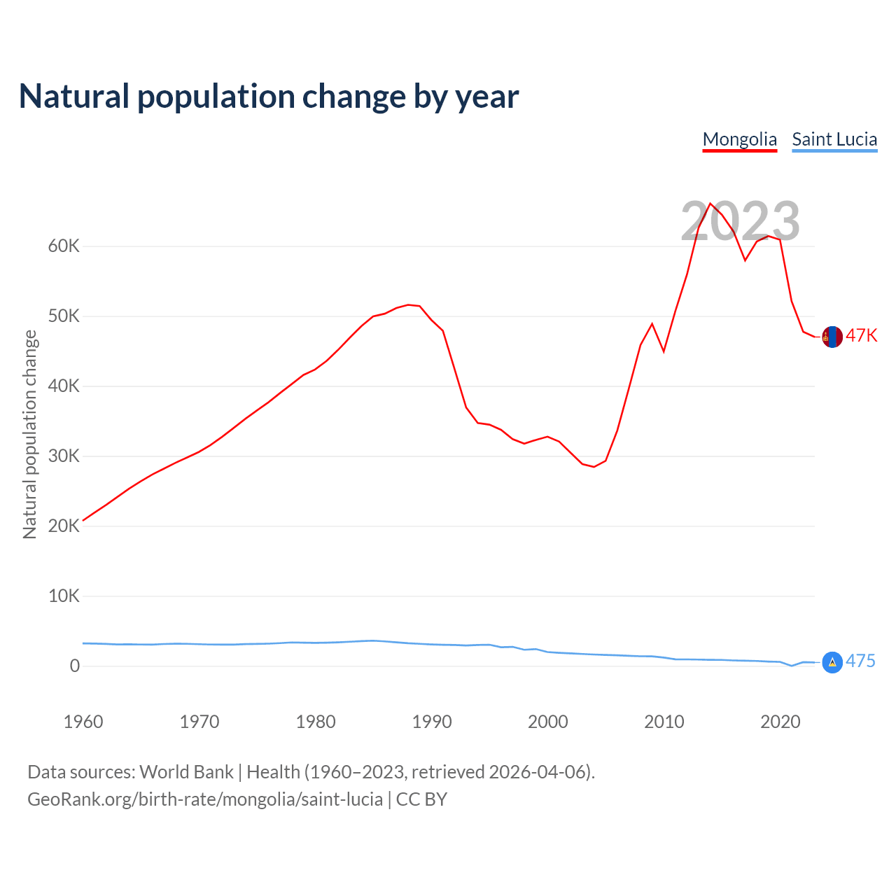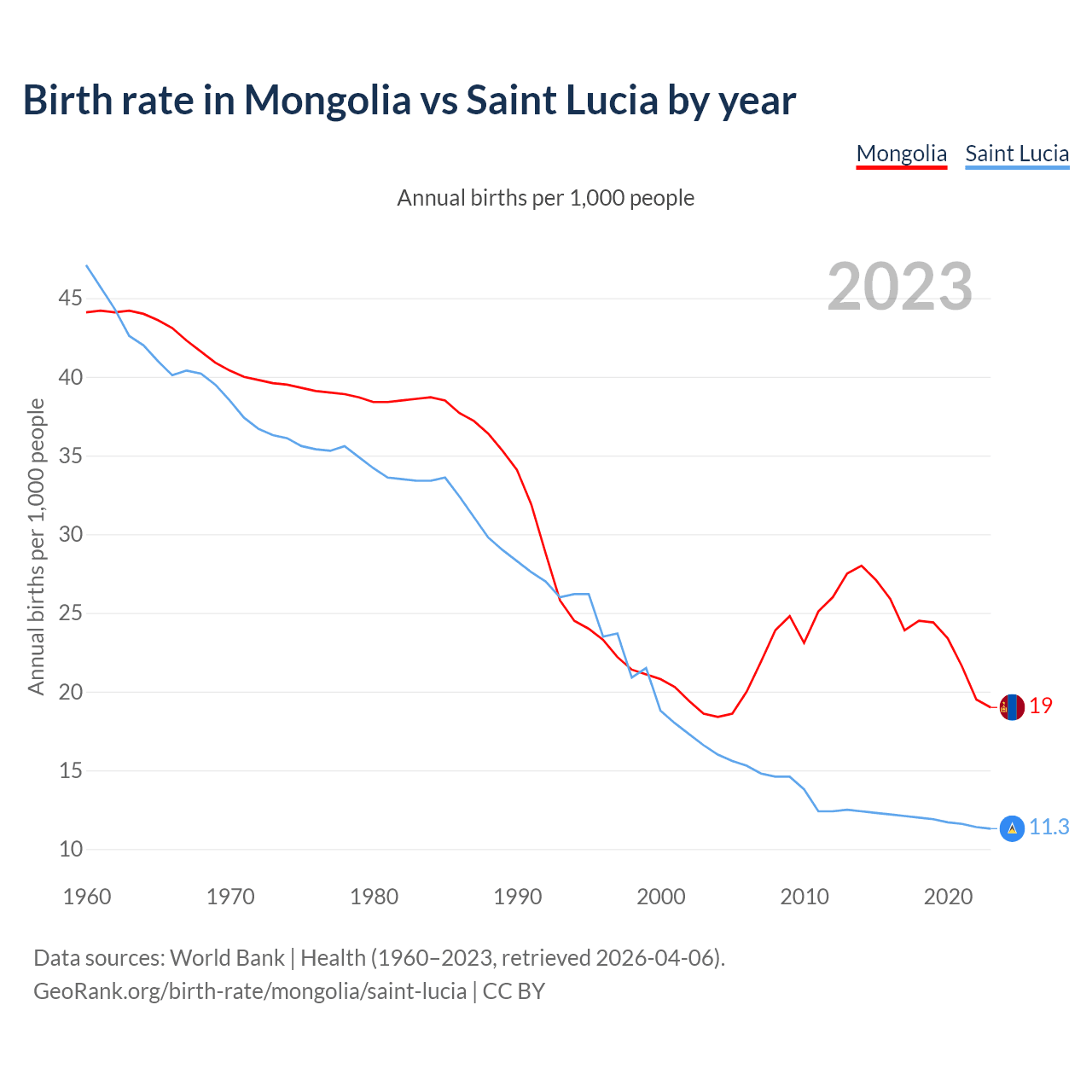 GeoRank.org/birth-rate/mongolia/saint-lucia | CC BY