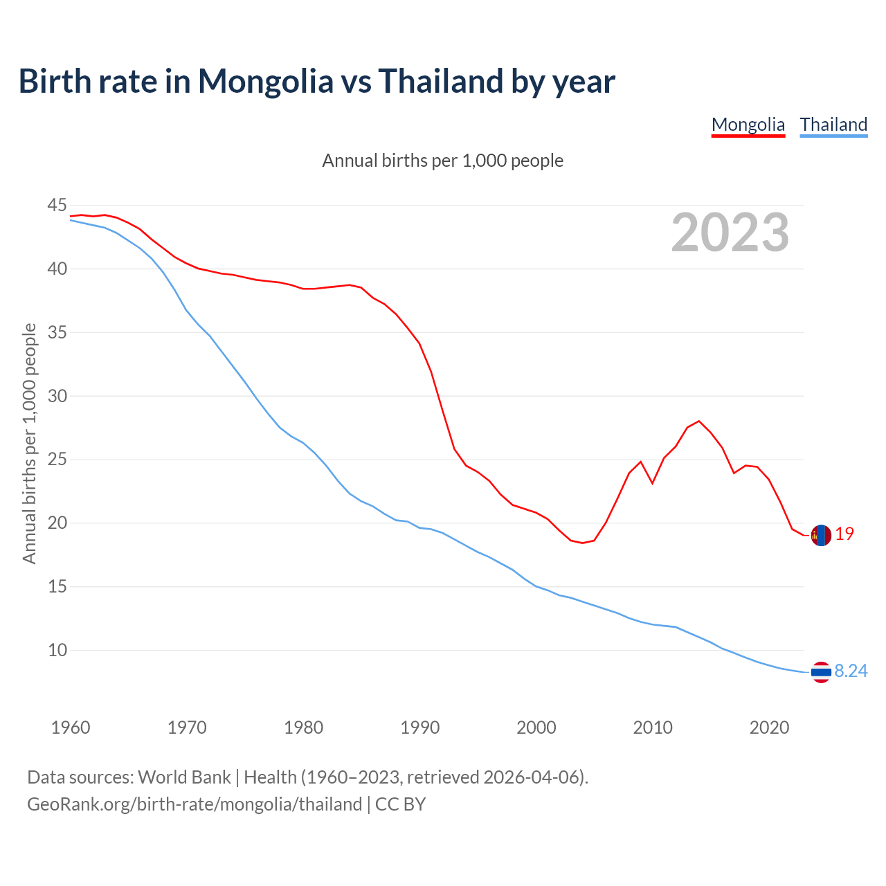 GeoRank.org/birth-rate/mongolia/thailand | CC BY