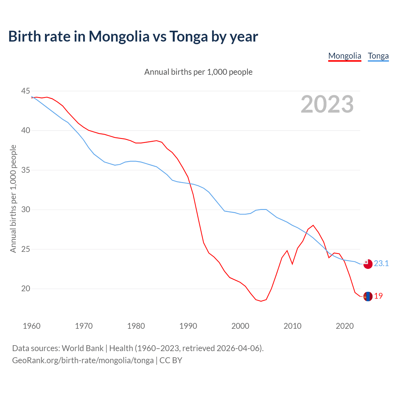 GeoRank.org/birth-rate/mongolia/tonga | CC BY