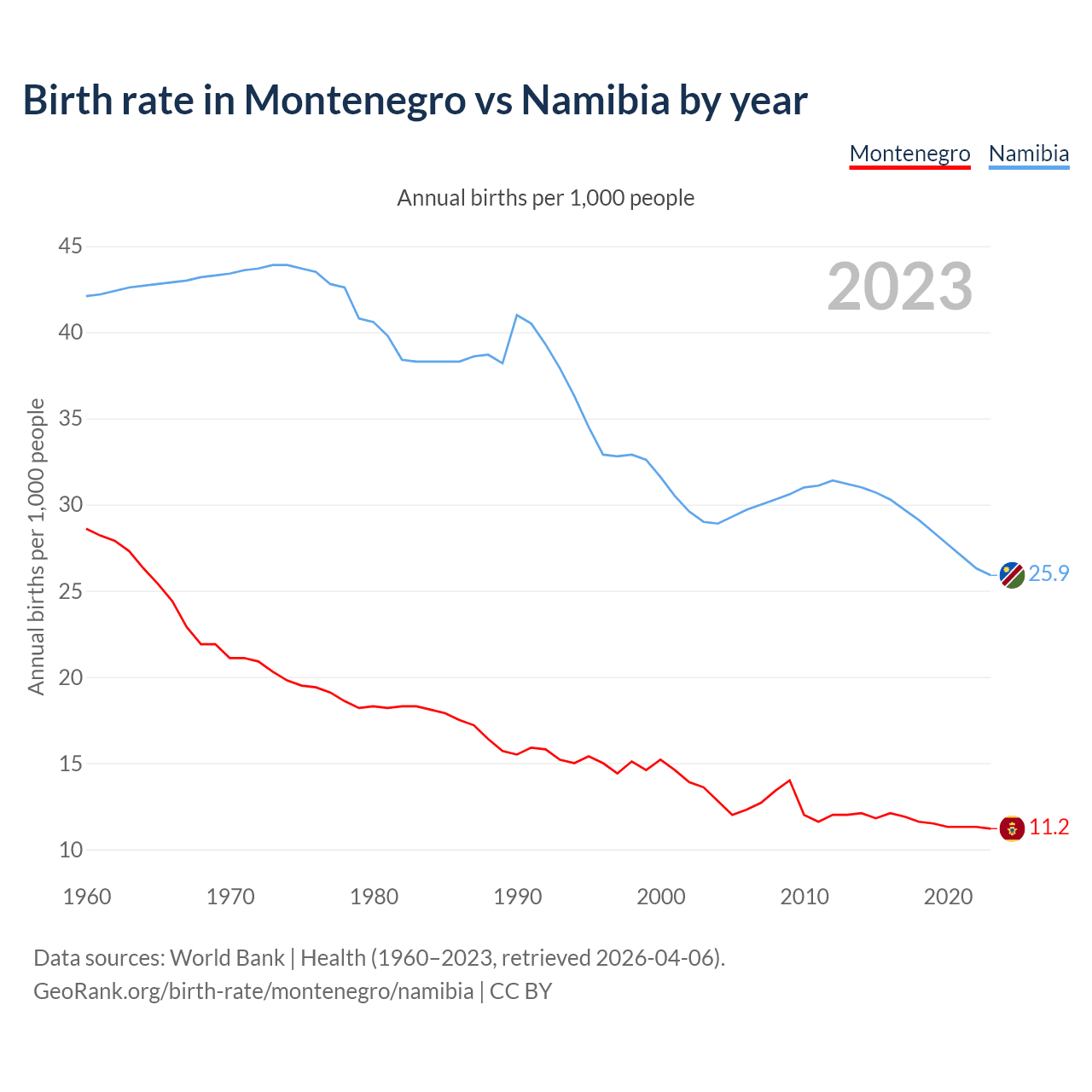 GeoRank.org/birth-rate/montenegro/namibia | CC BY