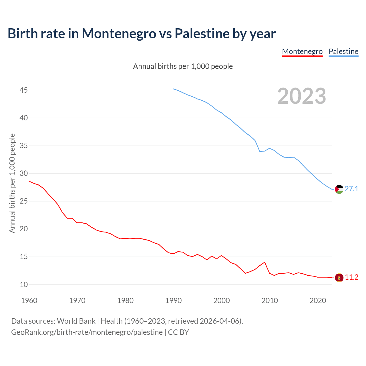 GeoRank.org/birth-rate/montenegro/palestine | CC BY