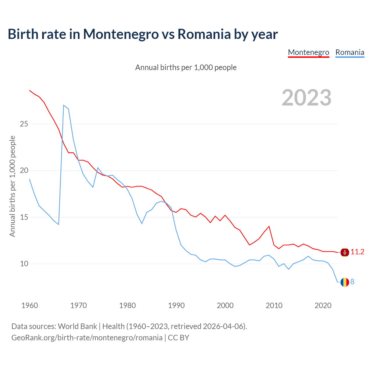 GeoRank.org/birth-rate/montenegro/romania | CC BY