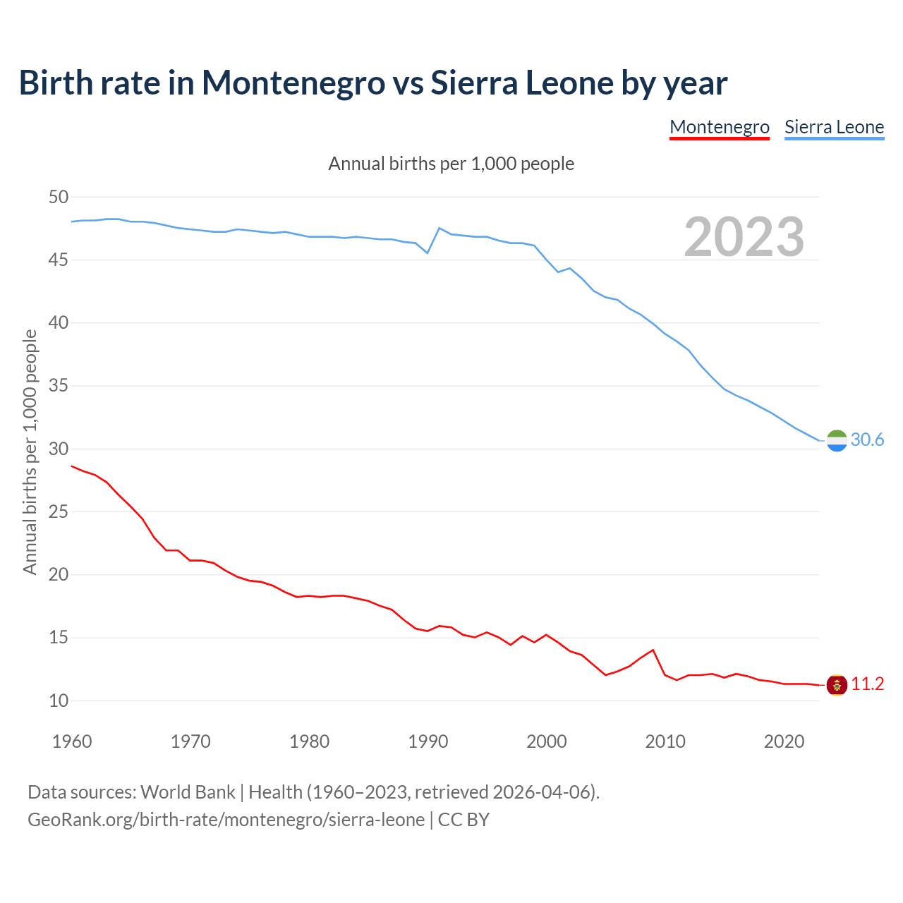 GeoRank.org/birth-rate/montenegro/sierra-leone | CC BY