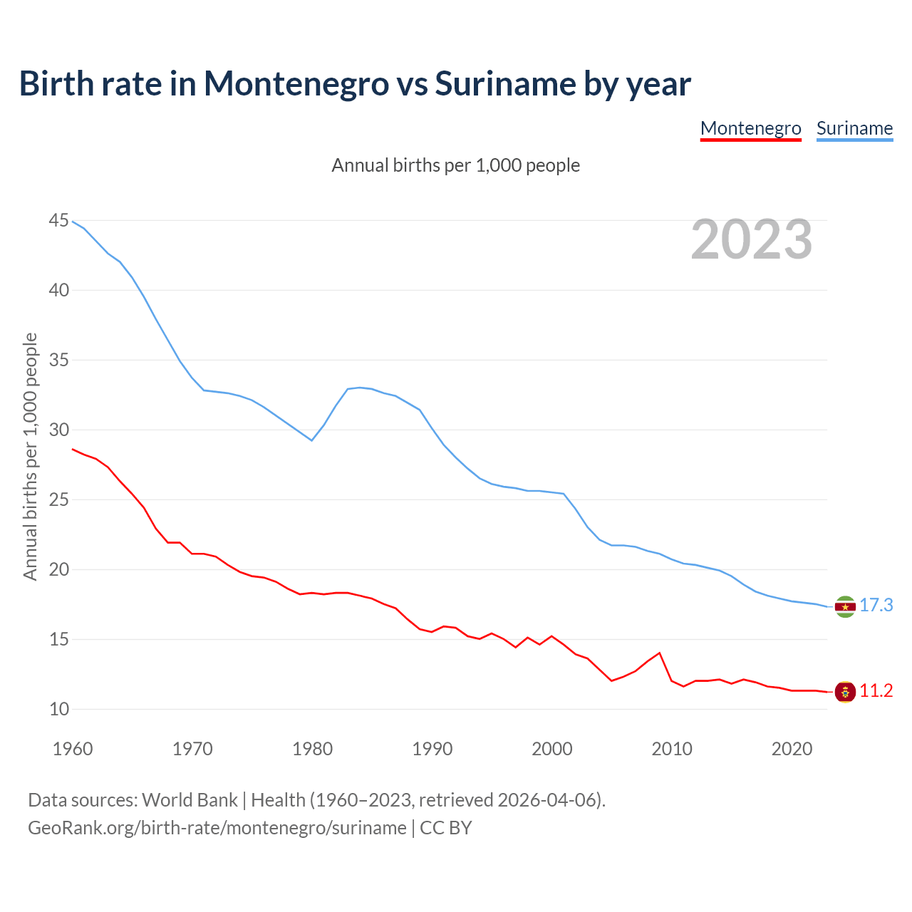 GeoRank.org/birth-rate/montenegro/suriname | CC BY