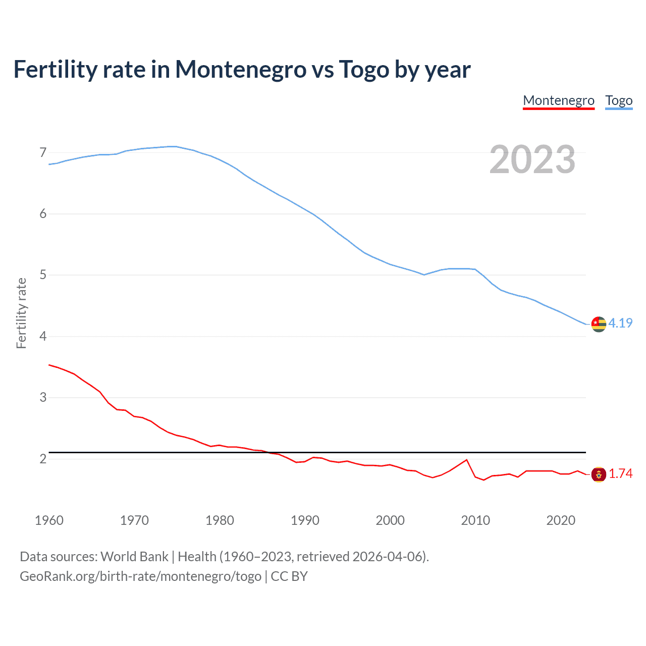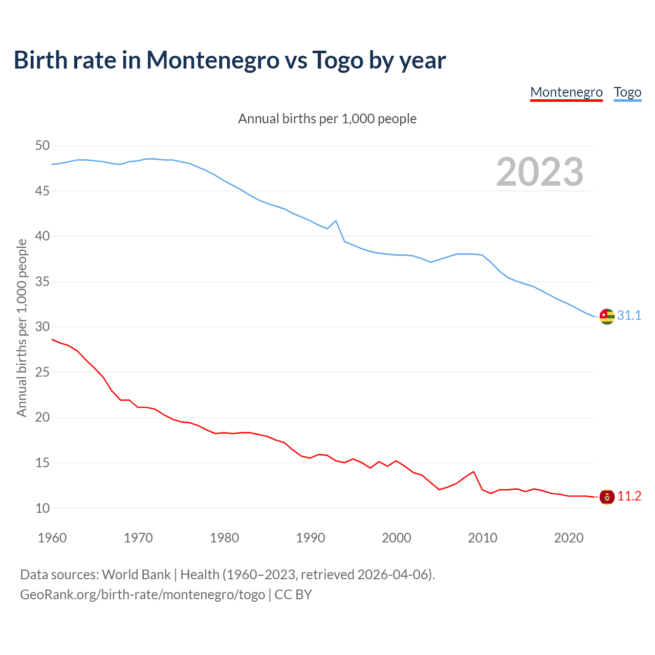 GeoRank.org/birth-rate/montenegro/togo | CC BY