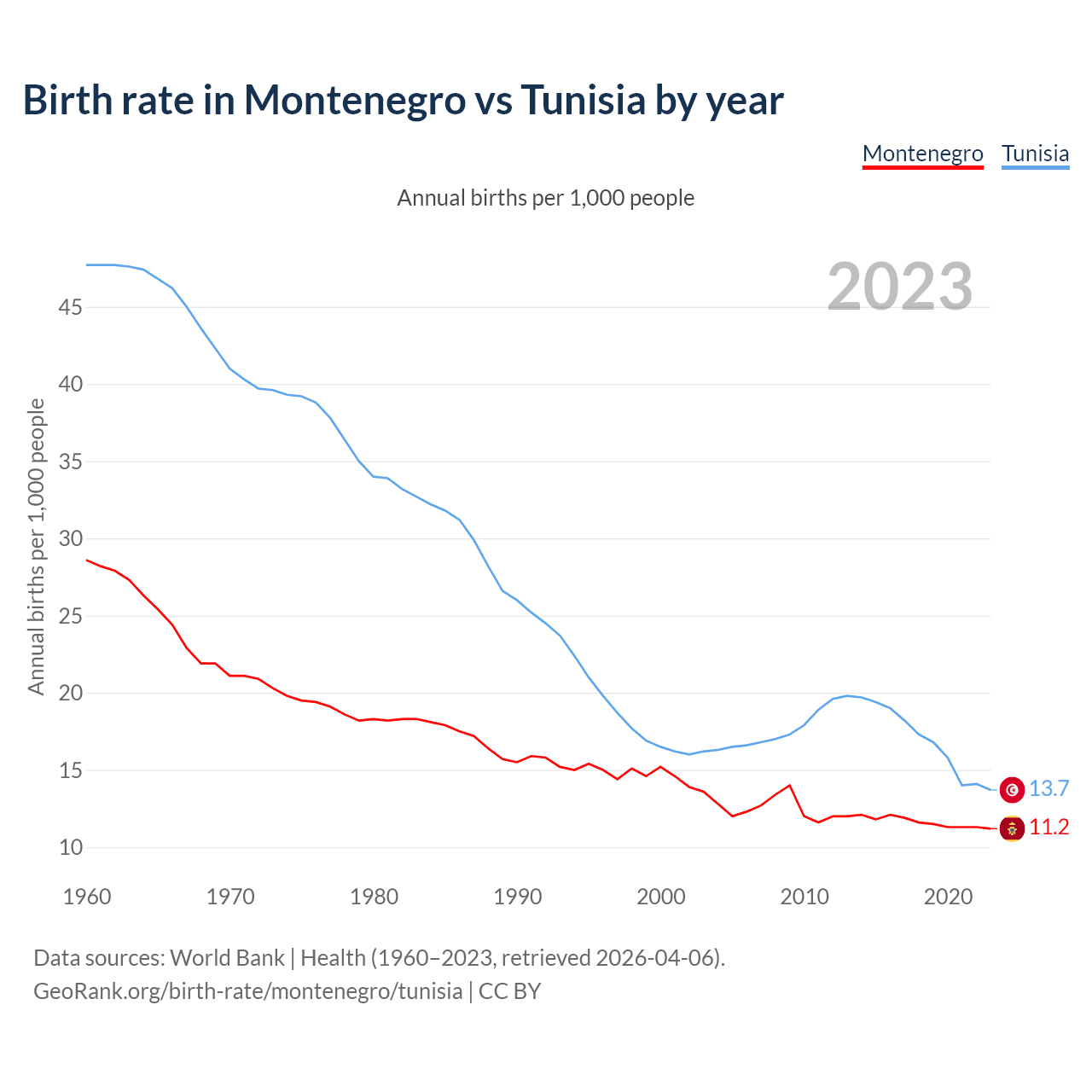 GeoRank.org/birth-rate/montenegro/tunisia | CC BY