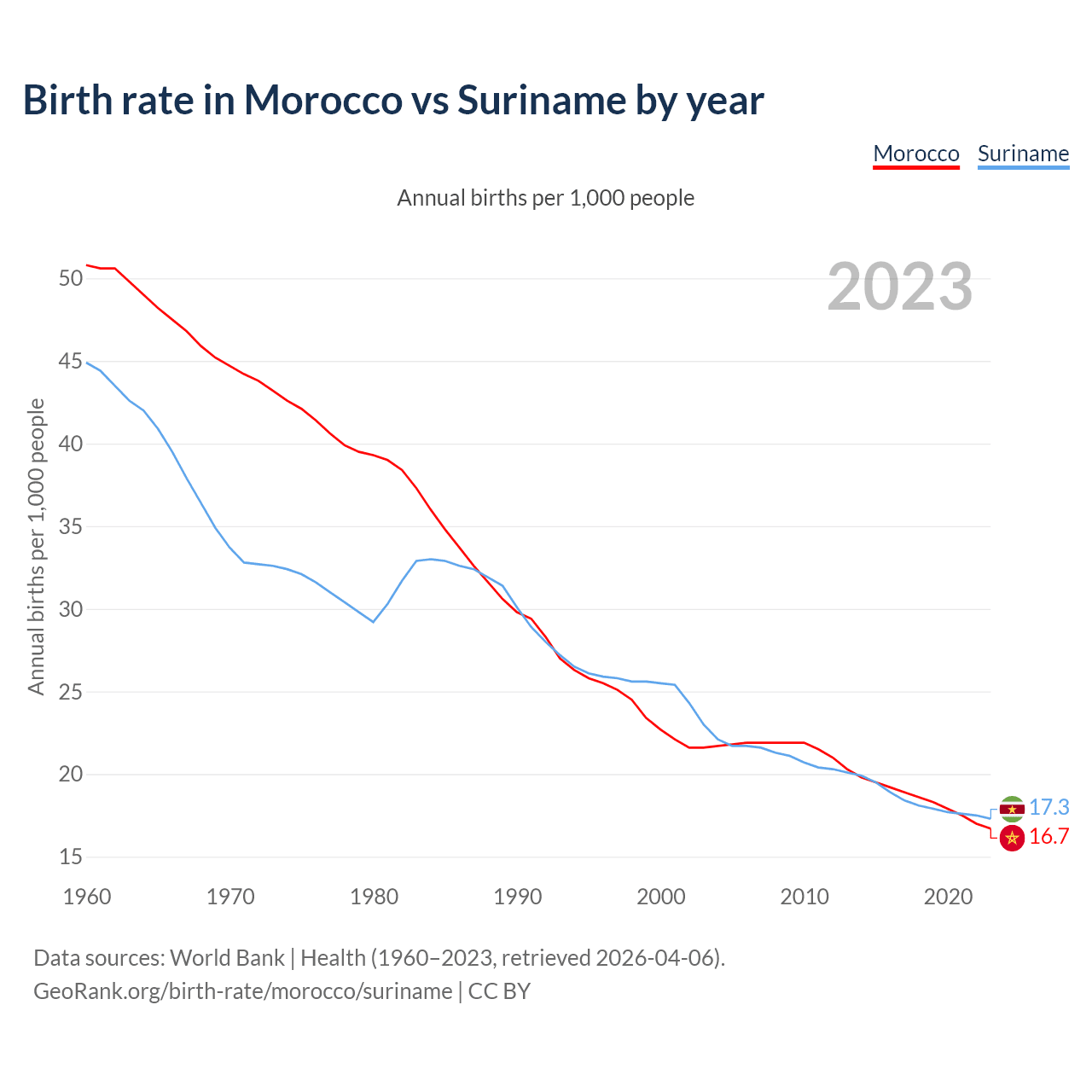 GeoRank.org/birth-rate/morocco/suriname | CC BY