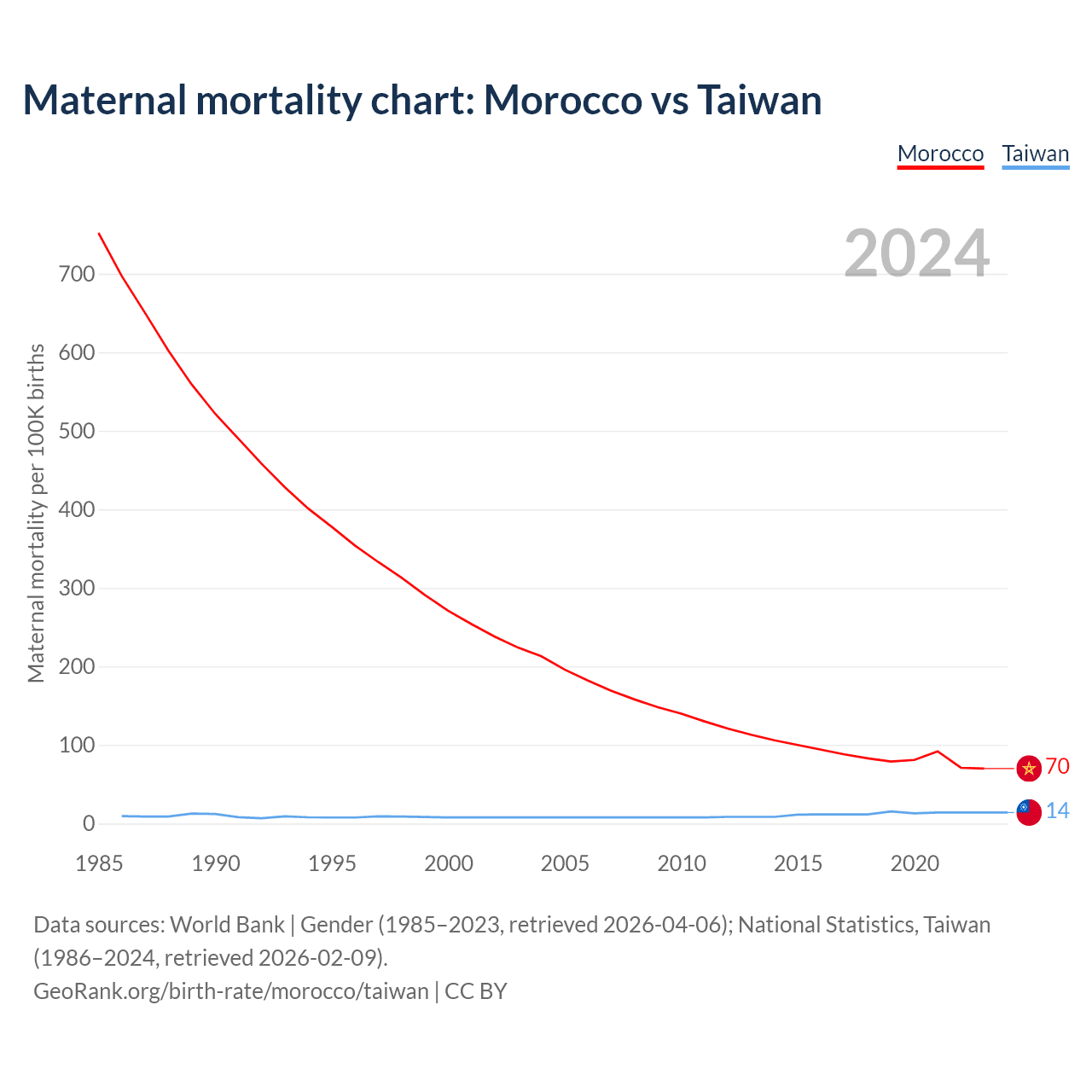 Maternal mortality chart: Morocco vs Taiwan