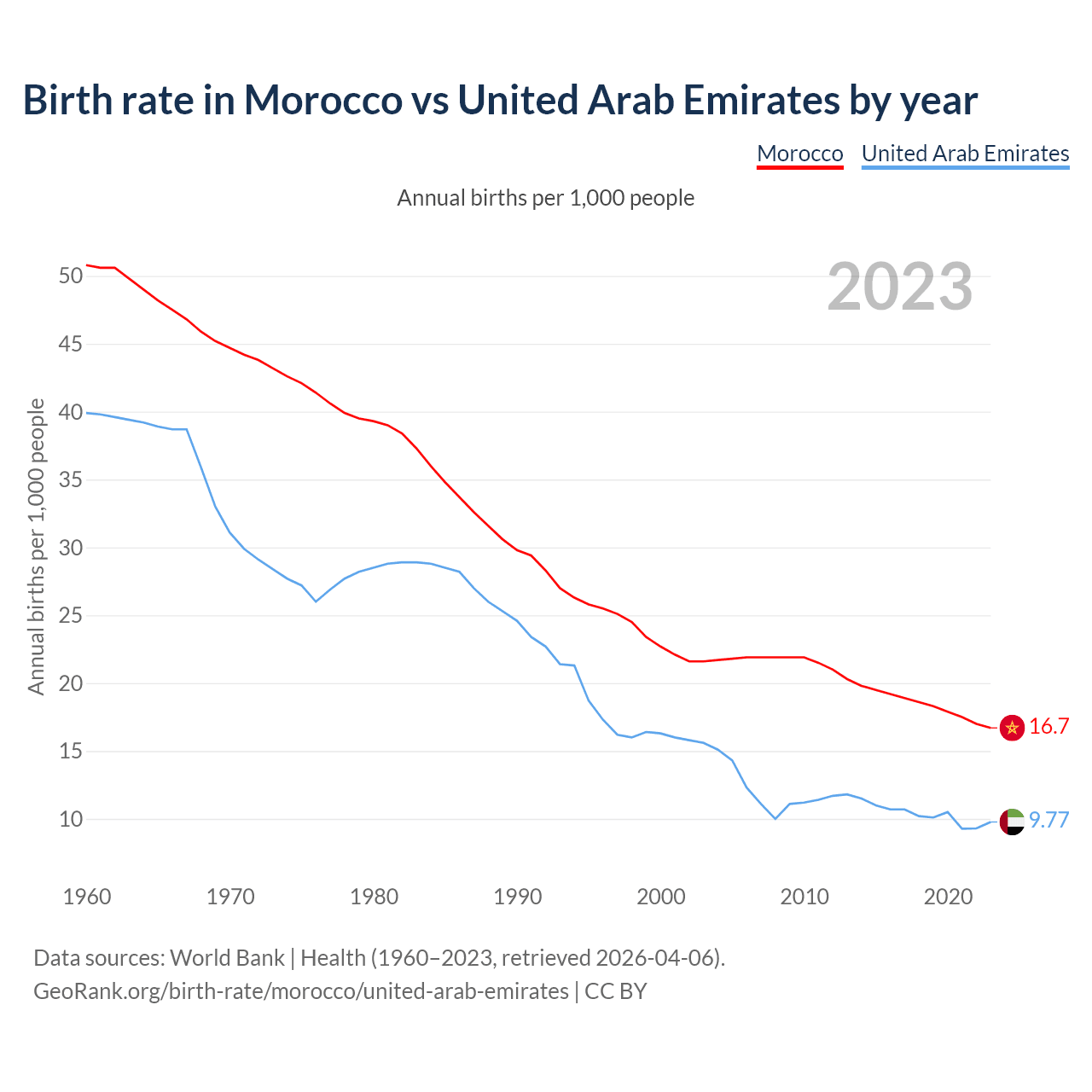 GeoRank.org/birth-rate/morocco/united-arab-emirates | CC BY