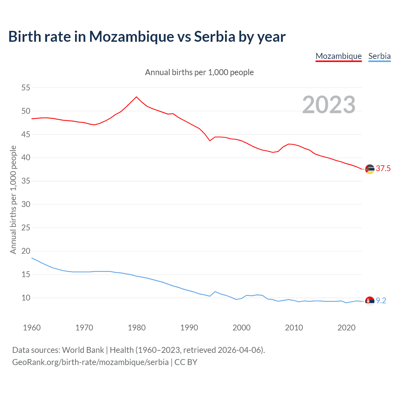 GeoRank.org/birth-rate/mozambique/serbia | CC BY