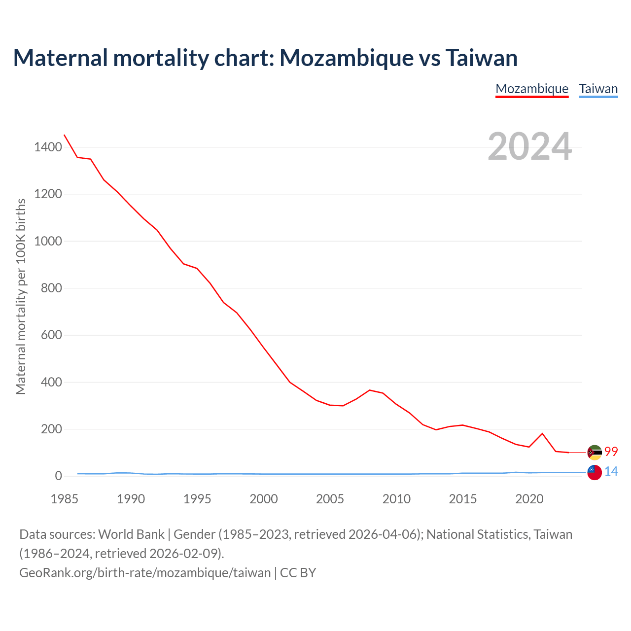 Maternal mortality chart: Mozambique vs Taiwan