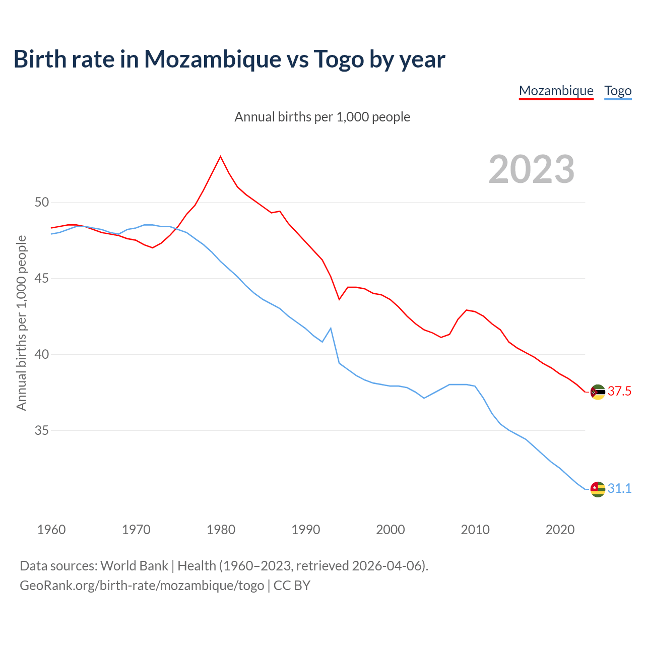 GeoRank.org/birth-rate/mozambique/togo | CC BY