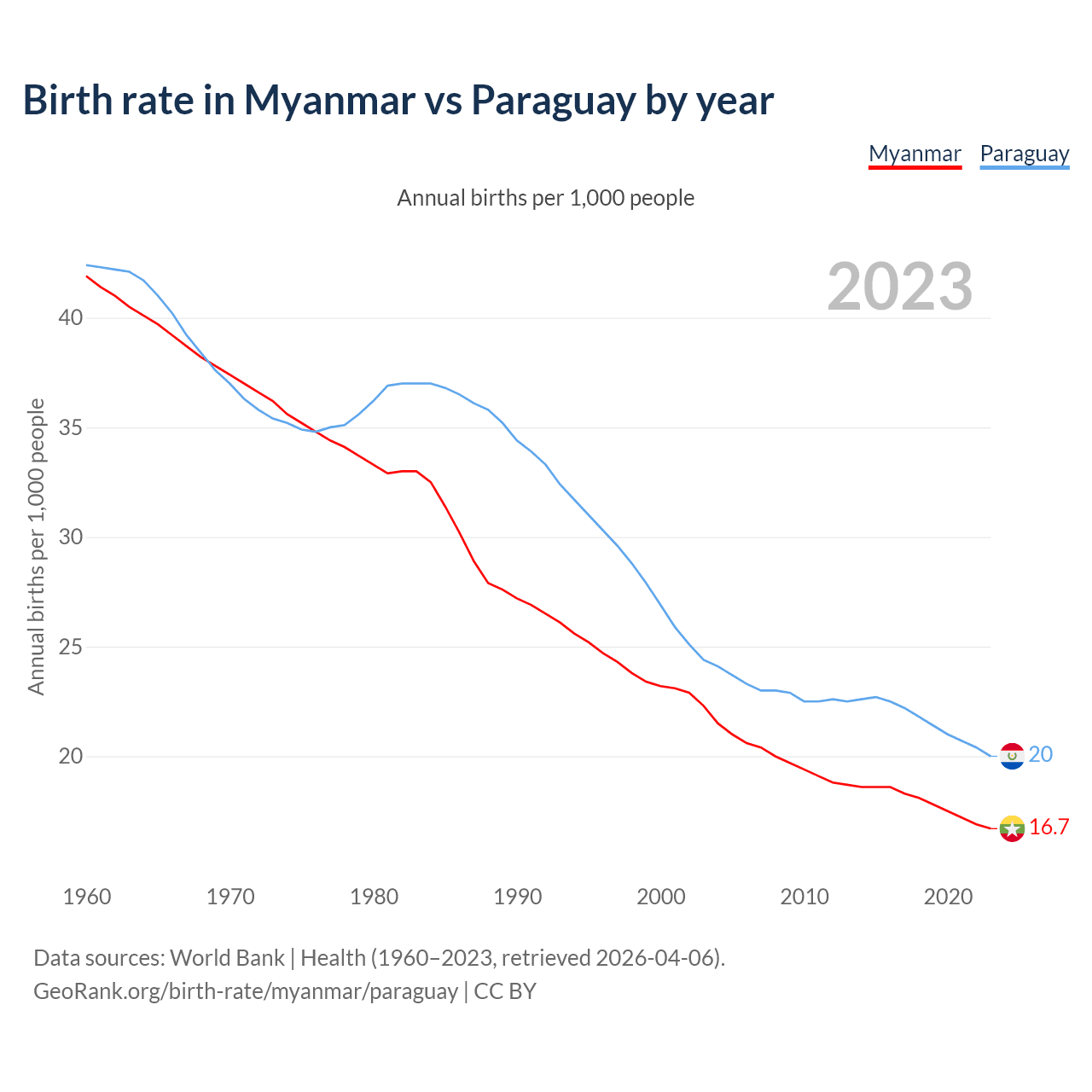 GeoRank.org/birth-rate/myanmar/paraguay | CC BY