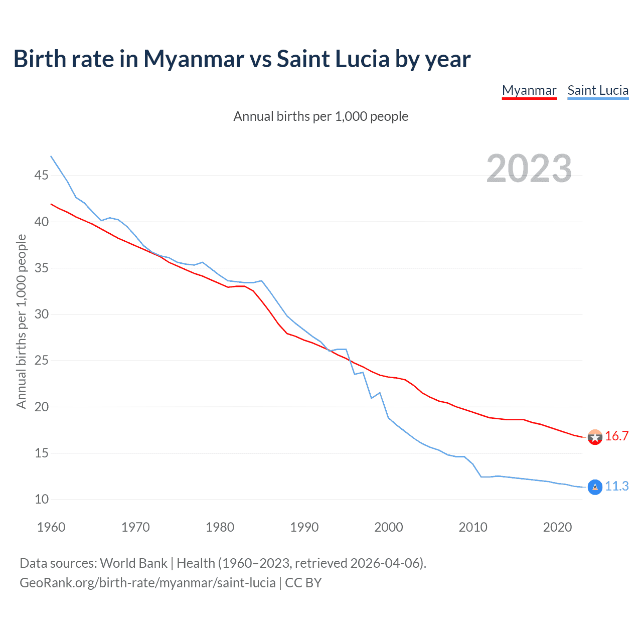 GeoRank.org/birth-rate/myanmar/saint-lucia | CC BY