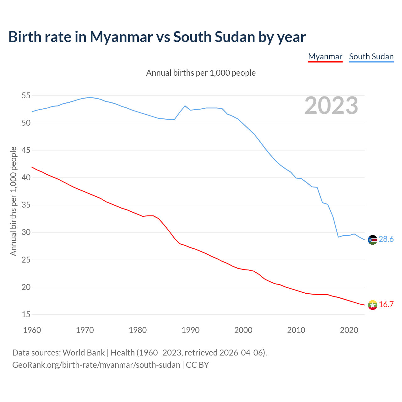 GeoRank.org/birth-rate/myanmar/south-sudan | CC BY
