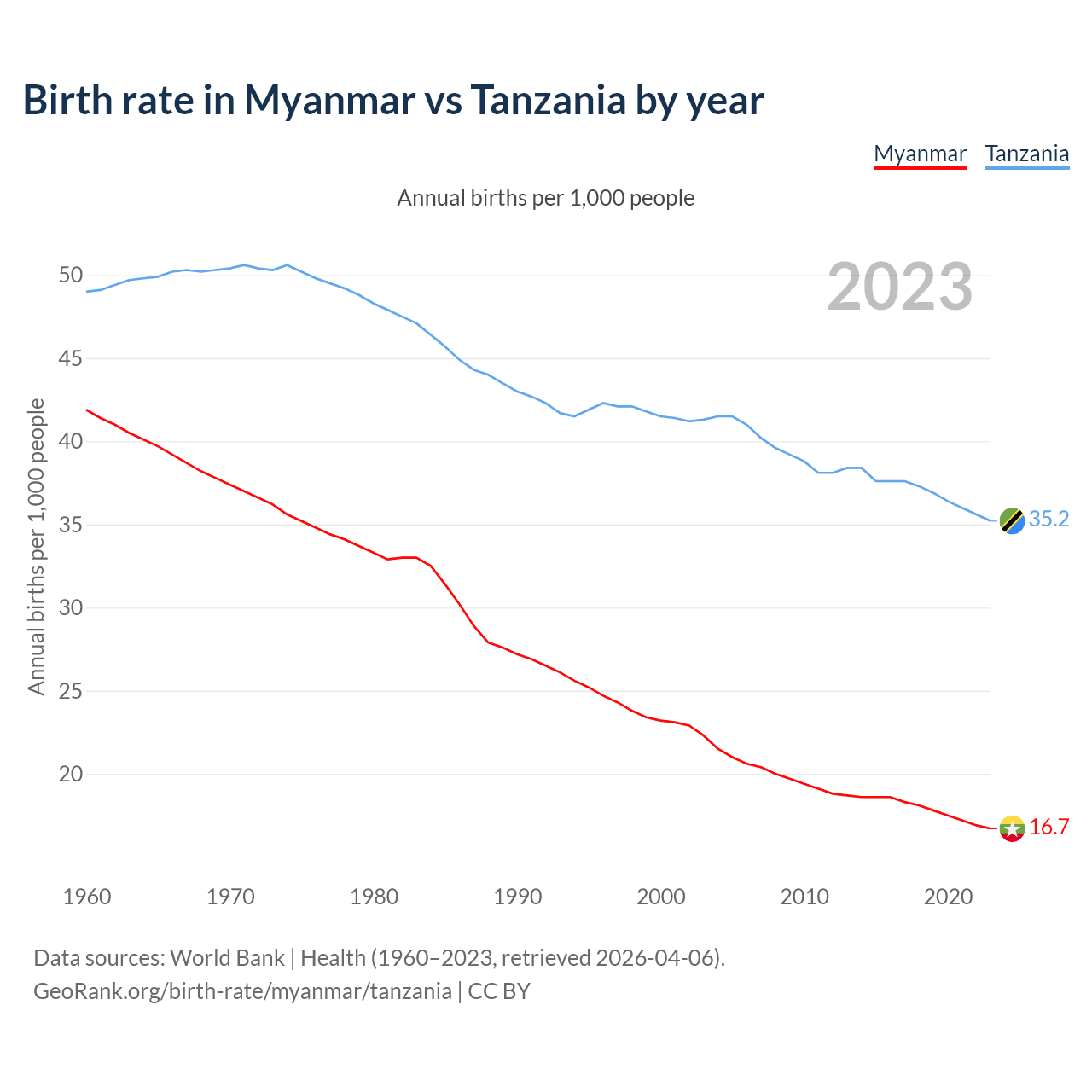 GeoRank.org/birth-rate/myanmar/tanzania | CC BY