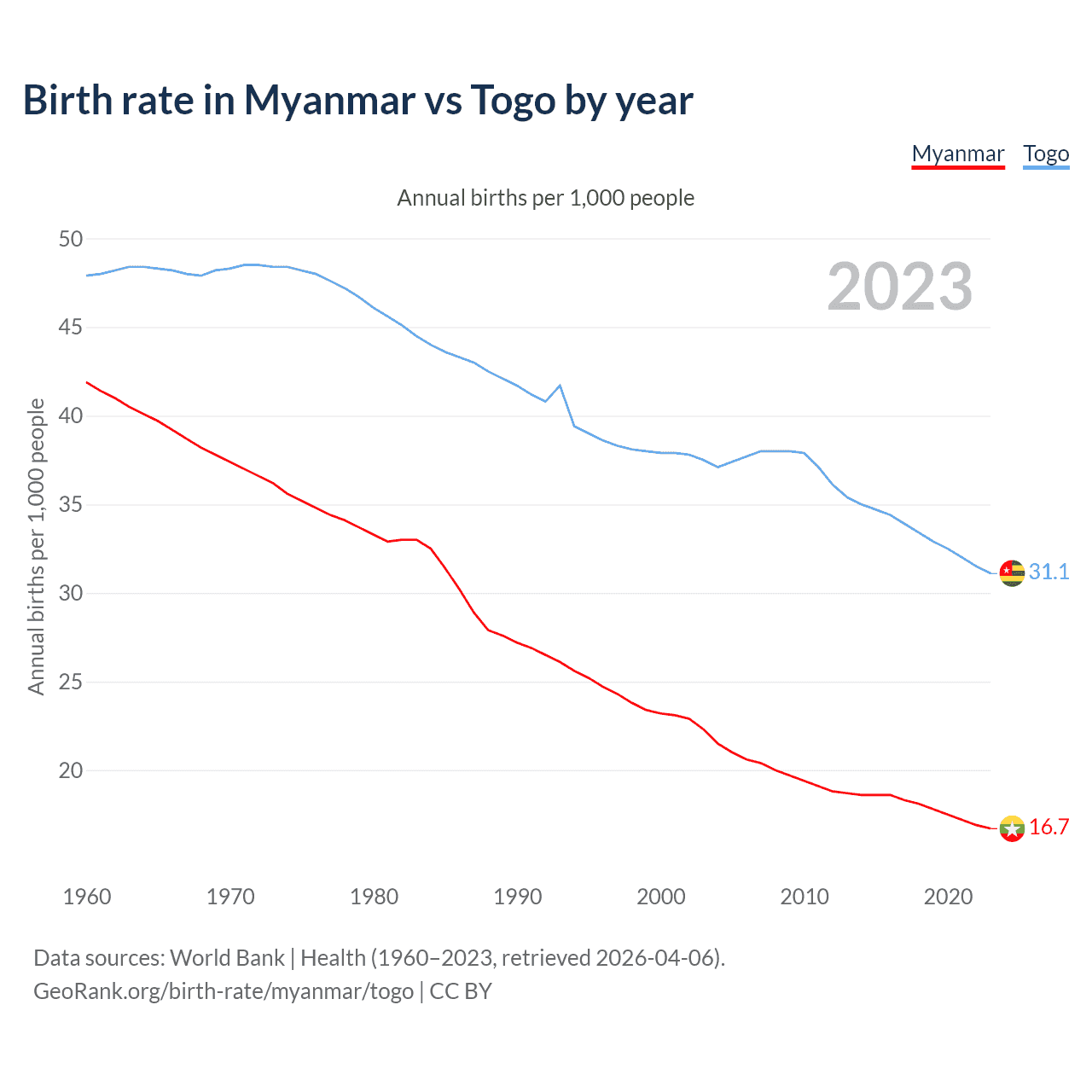 GeoRank.org/birth-rate/myanmar/togo | CC BY