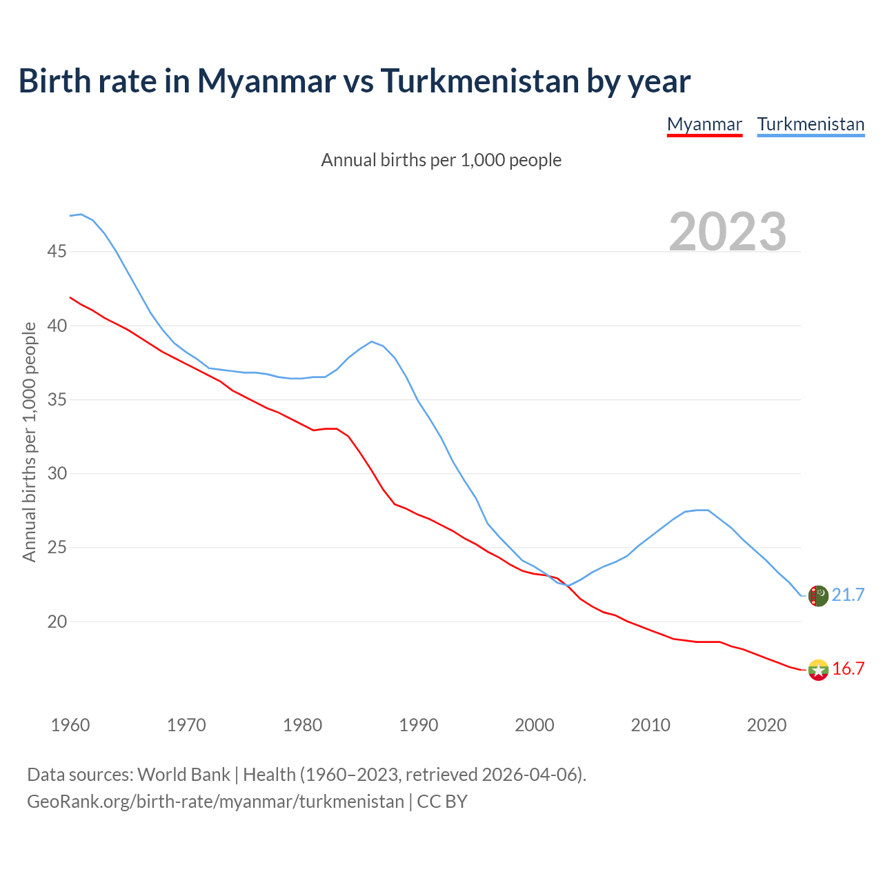 GeoRank.org/birth-rate/myanmar/turkmenistan | CC BY