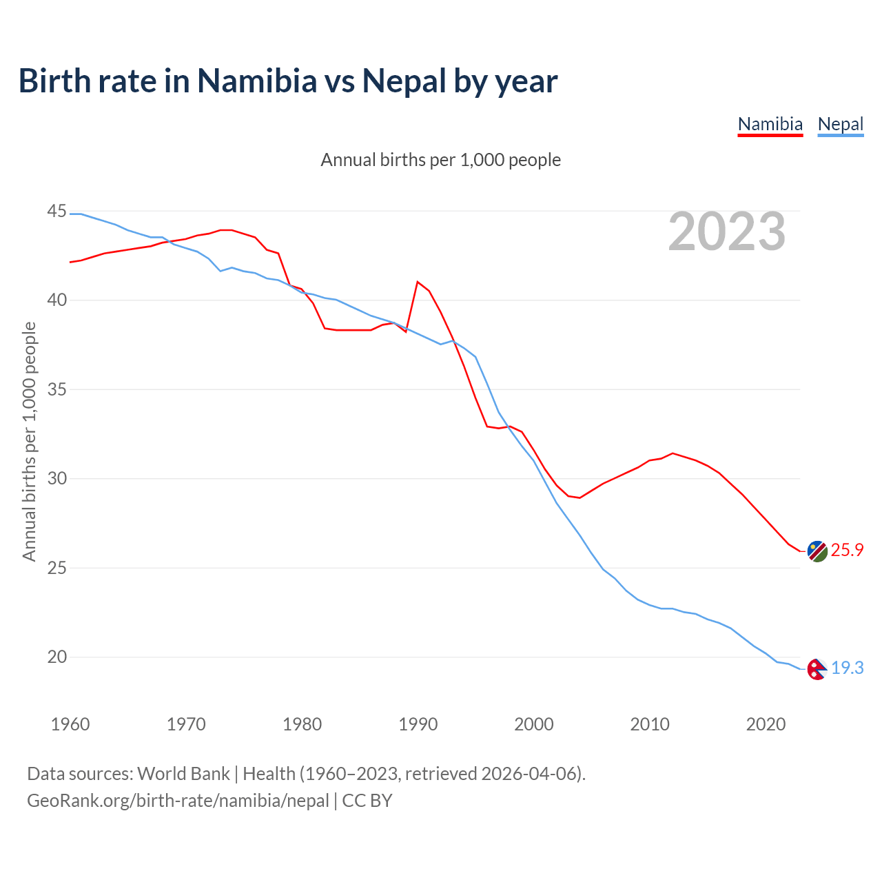 GeoRank.org/birth-rate/namibia/nepal | CC BY