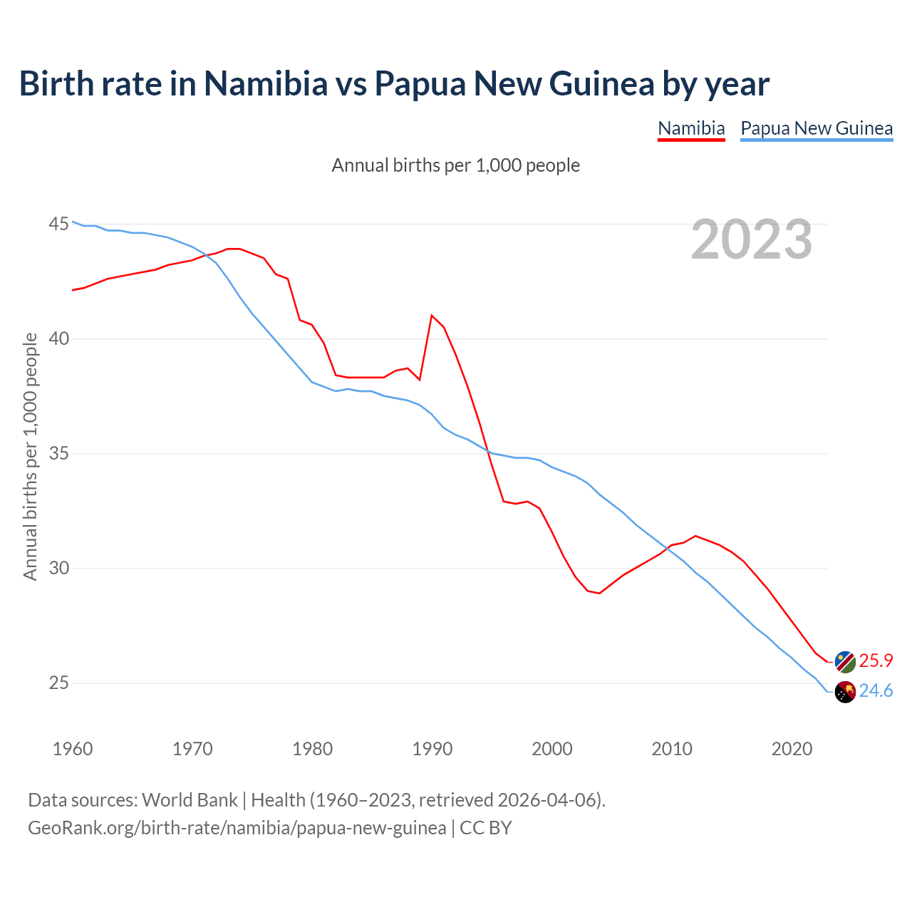 GeoRank.org/birth-rate/namibia/papua-new-guinea | CC BY