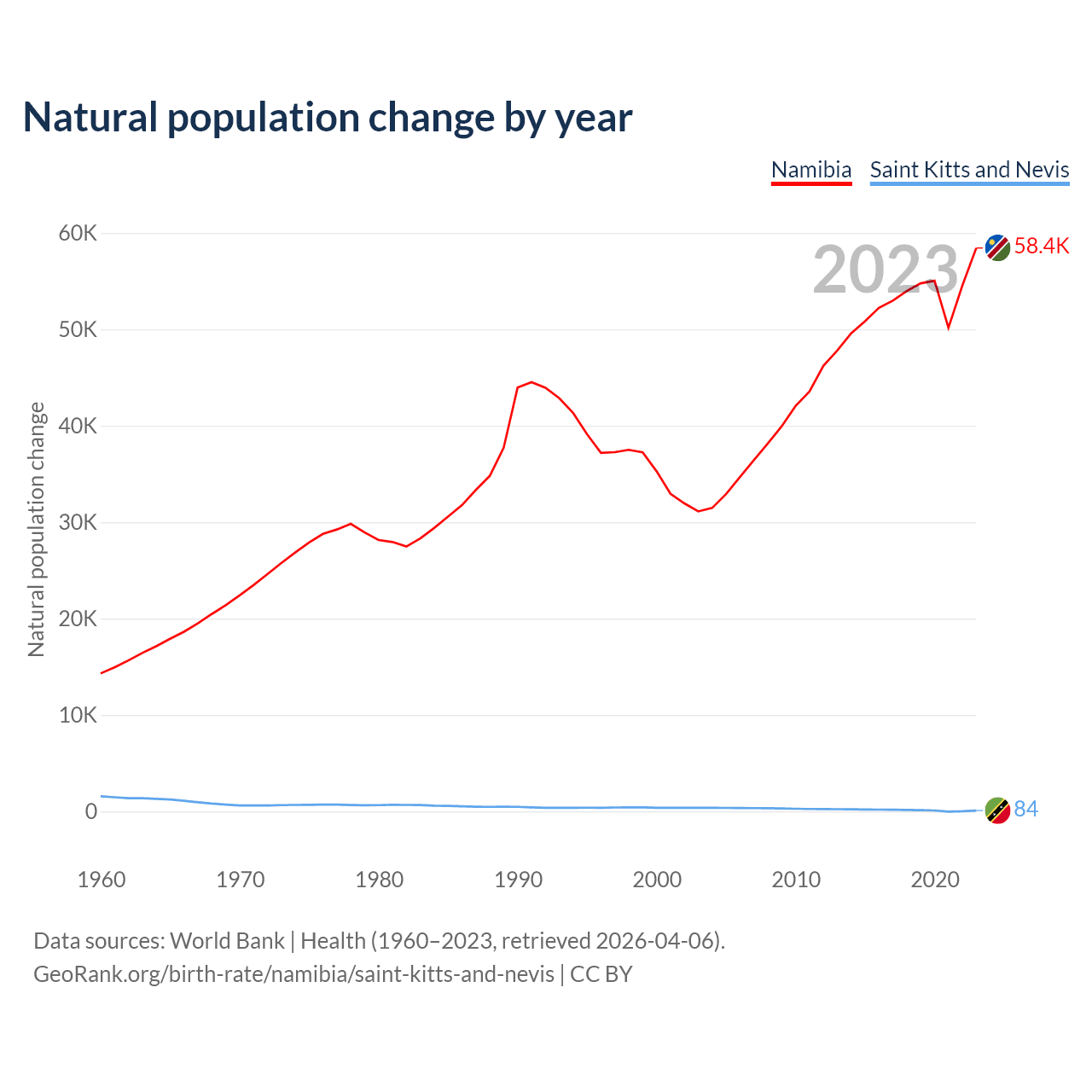 GeoRank.org/birth-rate/namibia/saint-kitts-and-nevis | CC BY