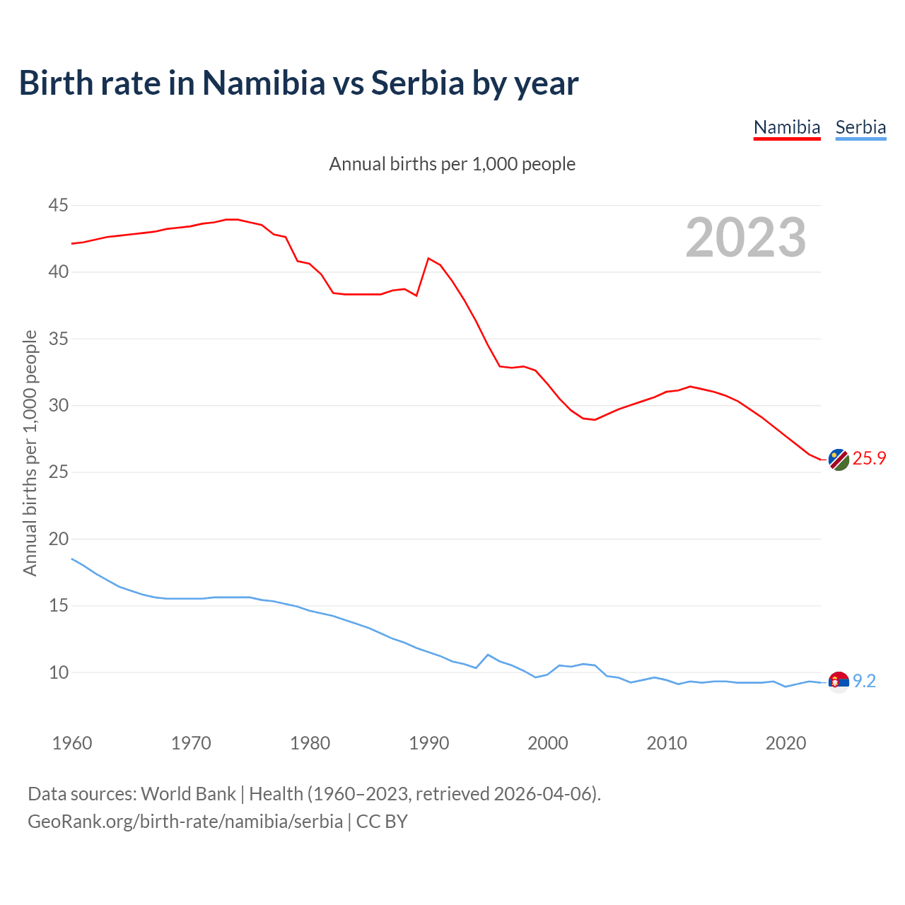 GeoRank.org/birth-rate/namibia/serbia | CC BY