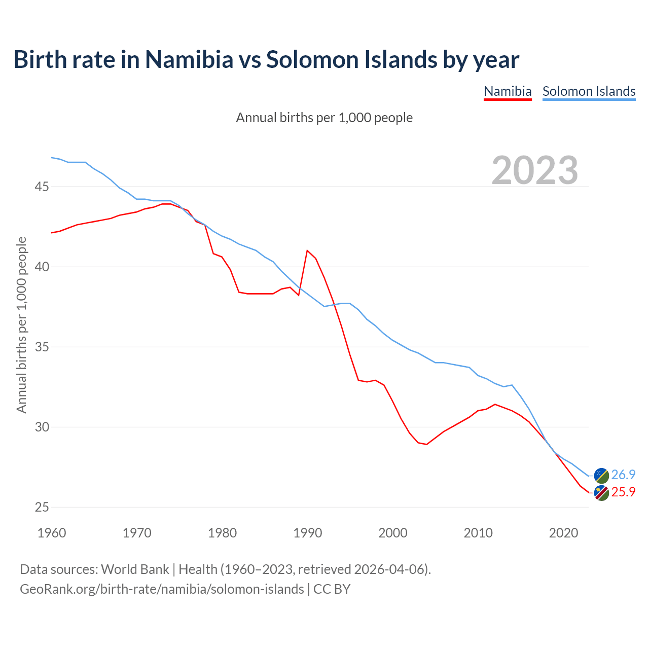 GeoRank.org/birth-rate/namibia/solomon-islands | CC BY