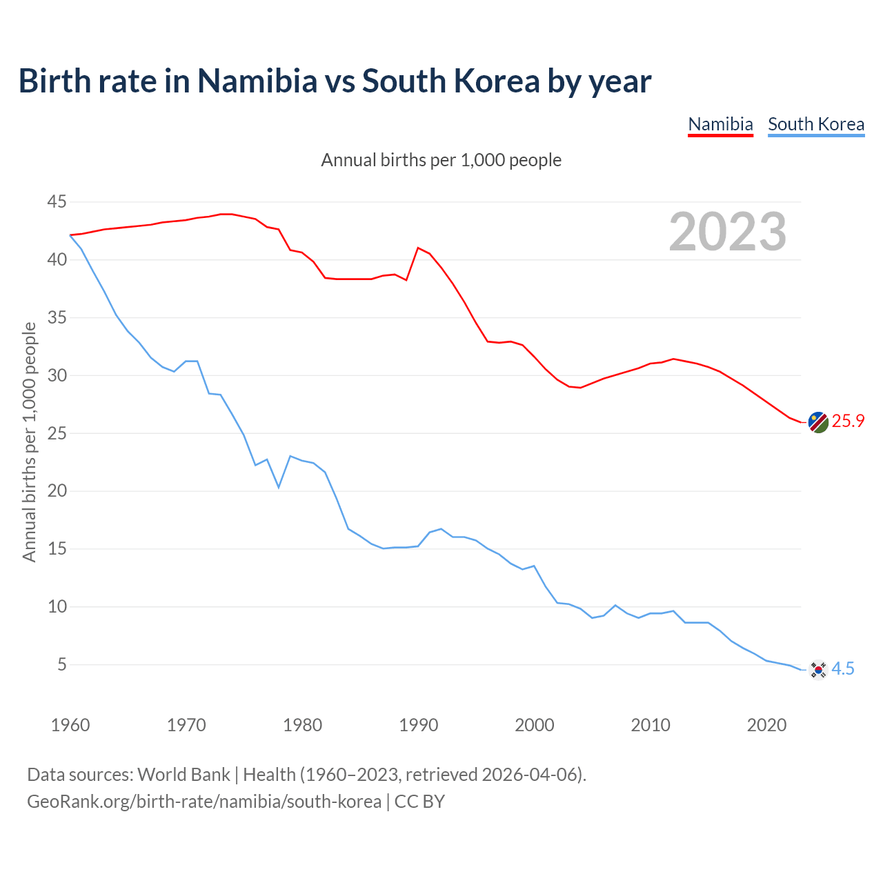 GeoRank.org/birth-rate/namibia/south-korea | CC BY